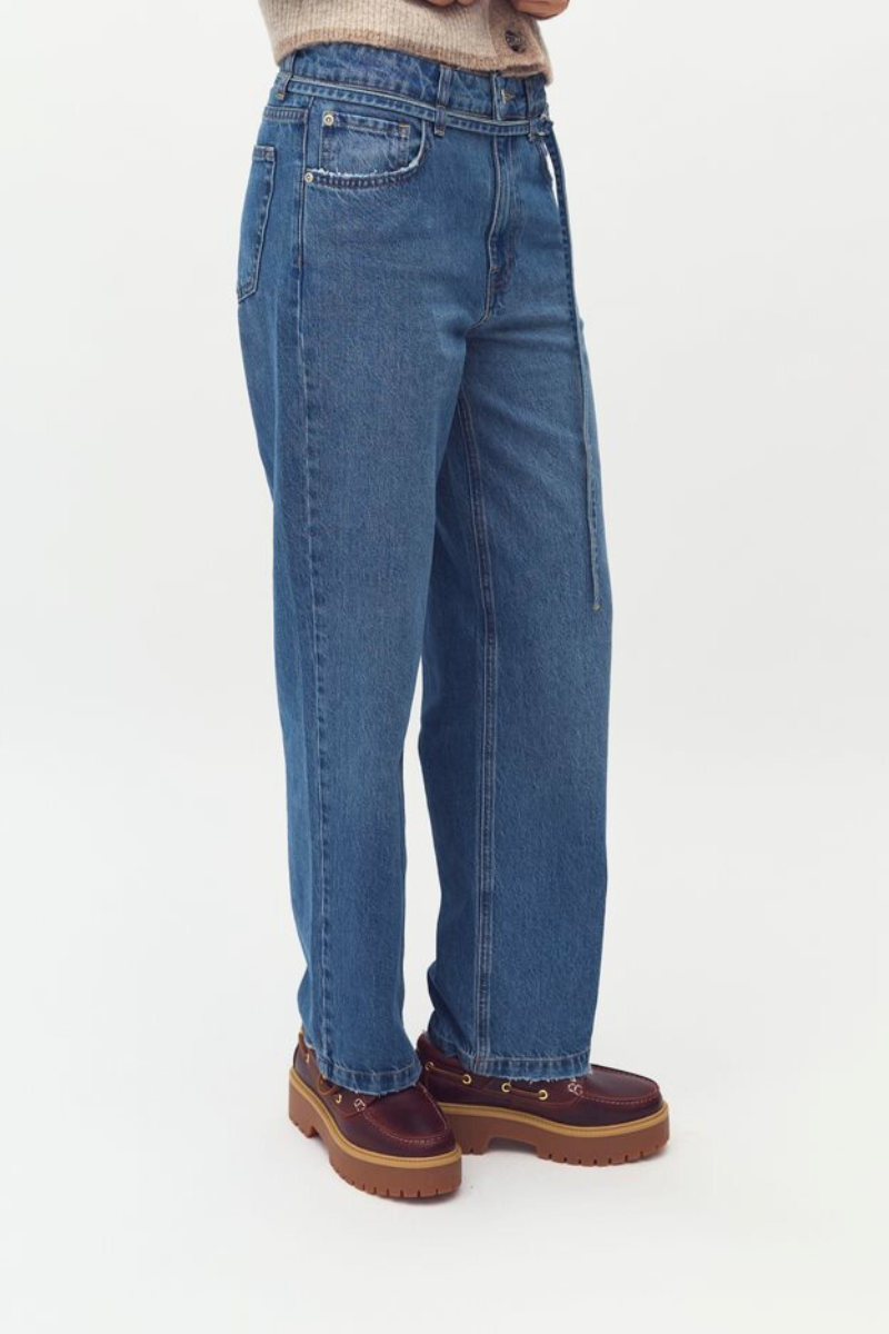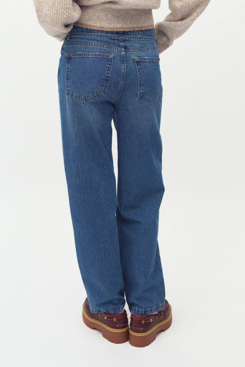 Die Jeans von mbyM in Mittelblau hat eine lockere Passform mit geraden Beinen und mittlerer Taille. Sie verfügt über 5 Taschen und einen abnehmbaren Jeansgürtel, der durch die Gürtelschlaufen geführt werden kann. Mit ihrem bequemen Sitz und praktischen Details ist diese Jeans ein Must-Have für jeden Tag.