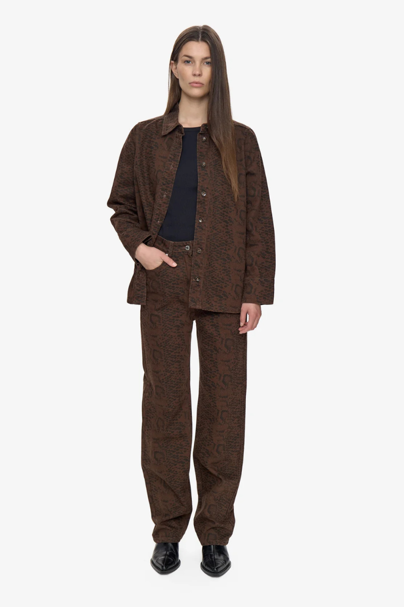 Dieses locker geschnittene Denim-Longsleeve von MINIMUM besticht durch seinen modischen Schlangenprint. Es vereint lässigen Komfort mit einem aufregenden Design, das jedem Outfit eine besondere Note verleiht.