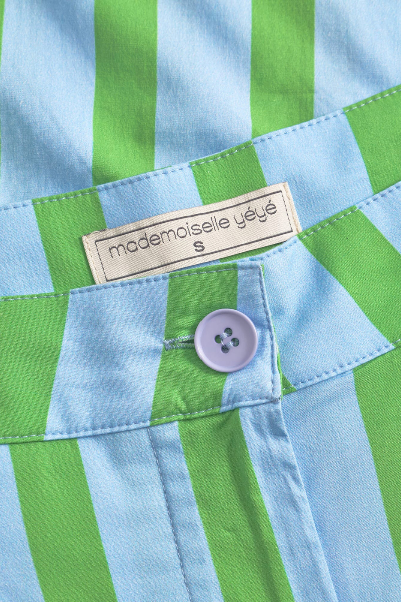 Die Hose von Mademoiselle YéYé ist aus leichtem Baumwoll-Popeline gefertigt und bietet ein weites, ausgestelltes Bein sowie eine verkürzte Länge. Mit Bundfalten, seitlichen Eingriffstaschen und großen Gesäßtaschen ist sie praktisch und stylisch zugleich. Perfekt für heiße Tage und kombinierbar mit unseren passenden Tops.