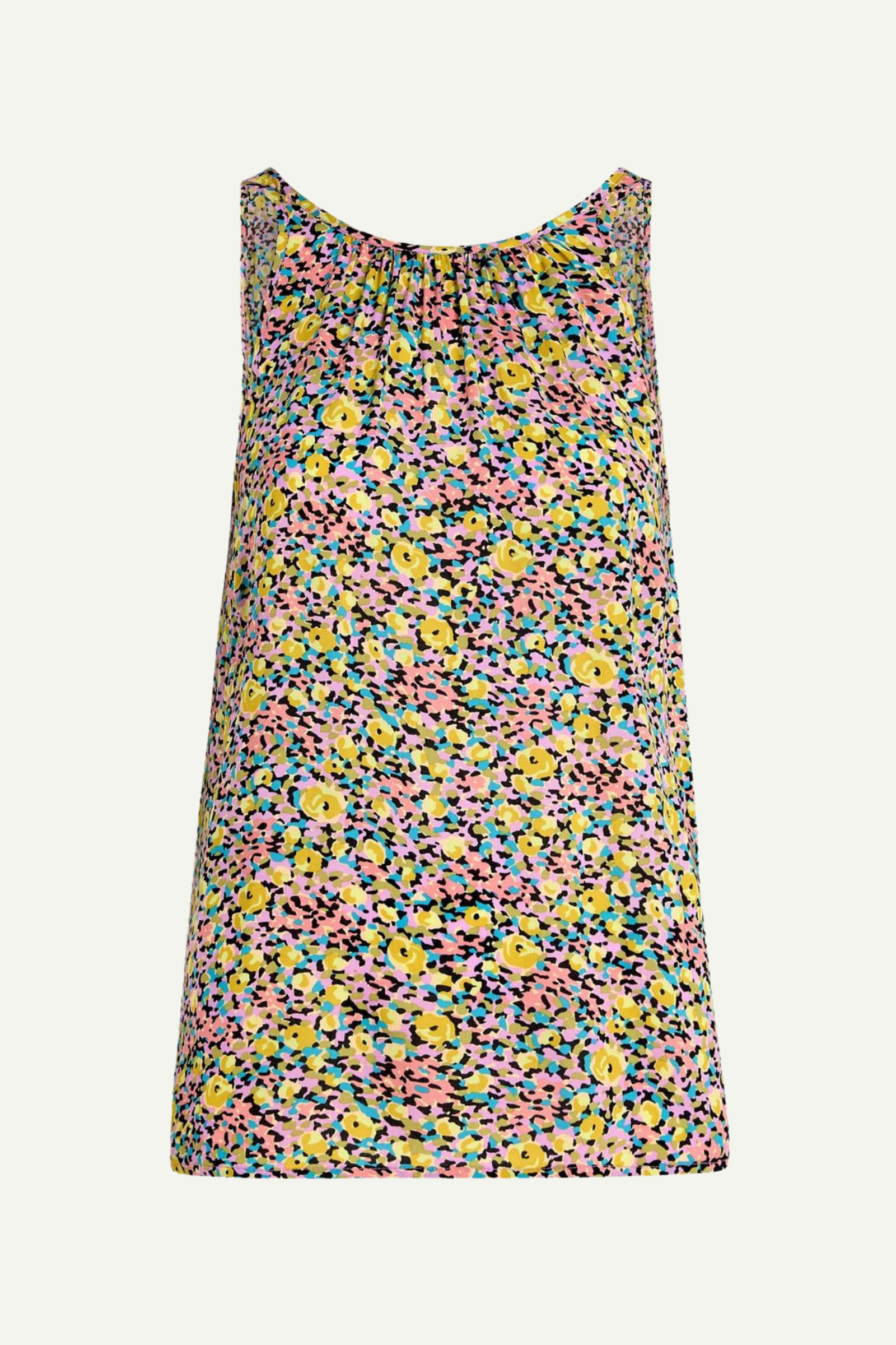 Verleihe deinem Look mit dem Top von King Louie einen Hauch von Romantik. Der geraffte Halsausschnitt und schmale Träger an den Schultern sorgen für eine feminine Note. Hergestellt aus LENZING™ ECOVERO™ Viskose, bietet dieses Top Komfort und Atmungsaktivität. Perfekt für einen sommerlichen Tag mit seinem Rundhalsausschnitt und den schönen Blumendetails.