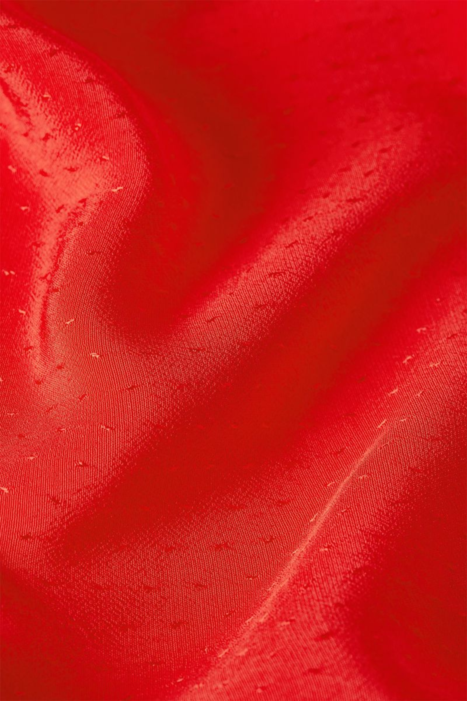Das Kleid Amy Sista Fire Red vo9n King Louie überzeugt mit angenehmem Stretchkomfort und kleinen Details wie angeschnittenen Ärmeln, Raffungen an der Brust und versteckten Taschen in der Naht. Der klassische Umlegekragen und der stoffeigene Bindegürtel verleihen dem Midi-Kleid einen eleganten Look, während die durchgehende Knopfleiste für ein bequemes An- und Ausziehen sorgt. Perfekt für jeden Anlass!