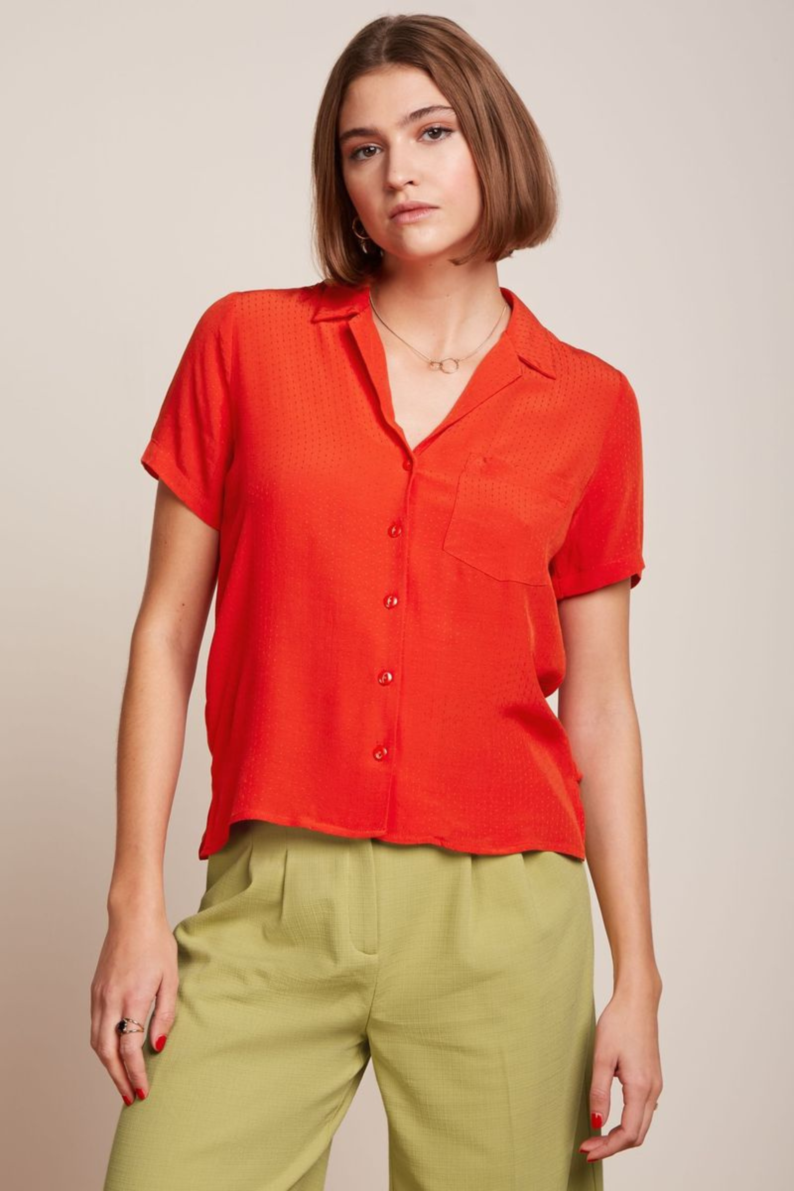 Luftig, leichtes Blusenshirt von King Louie mit Kragen, durchgehender Knopfleiste und Brusttasche. Ideal zu Jeans, zu einem Rock oder Shorts. Dank des angenehm leichten Viskose Stoffes ist es das ideale Oberteil für der Sommer.