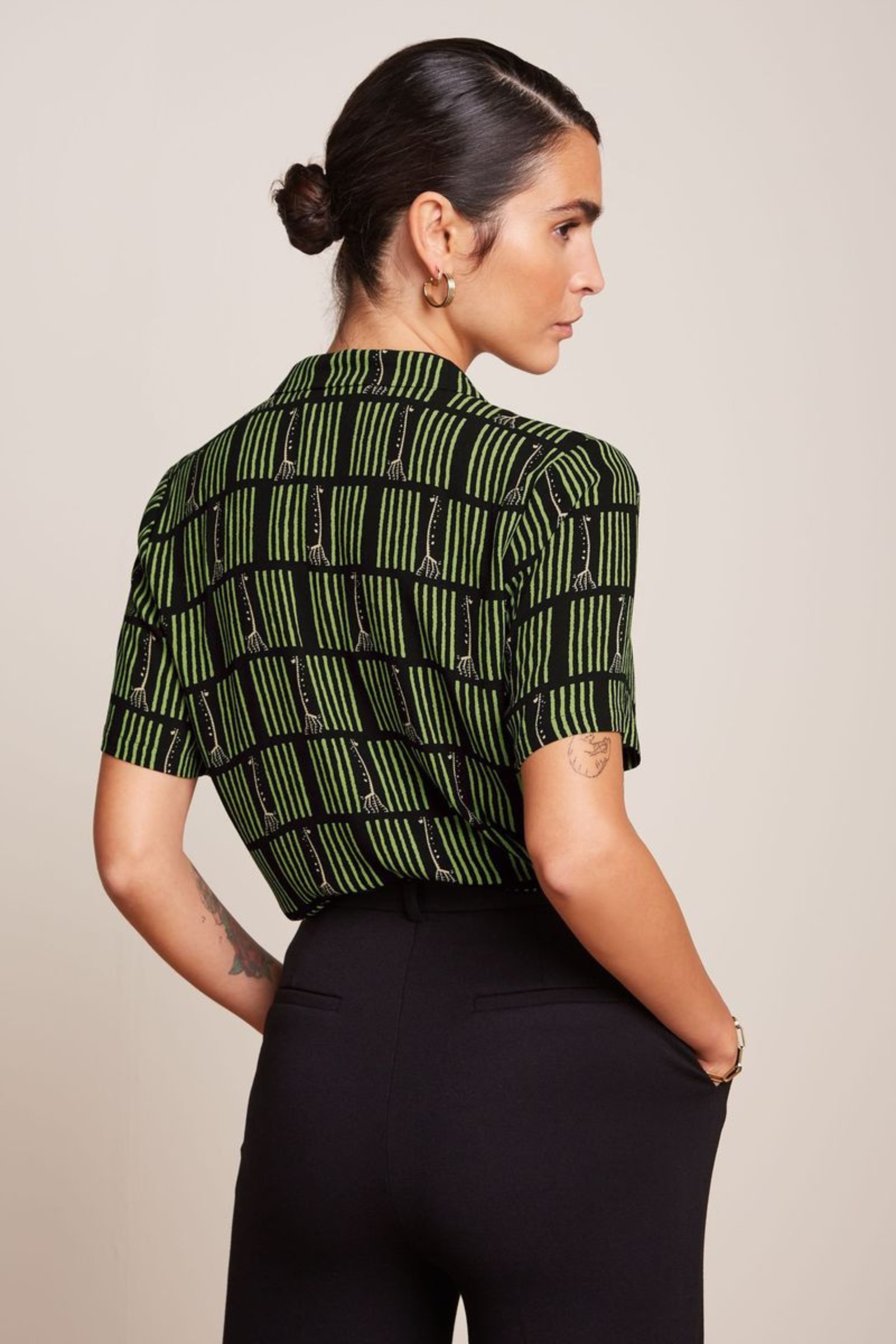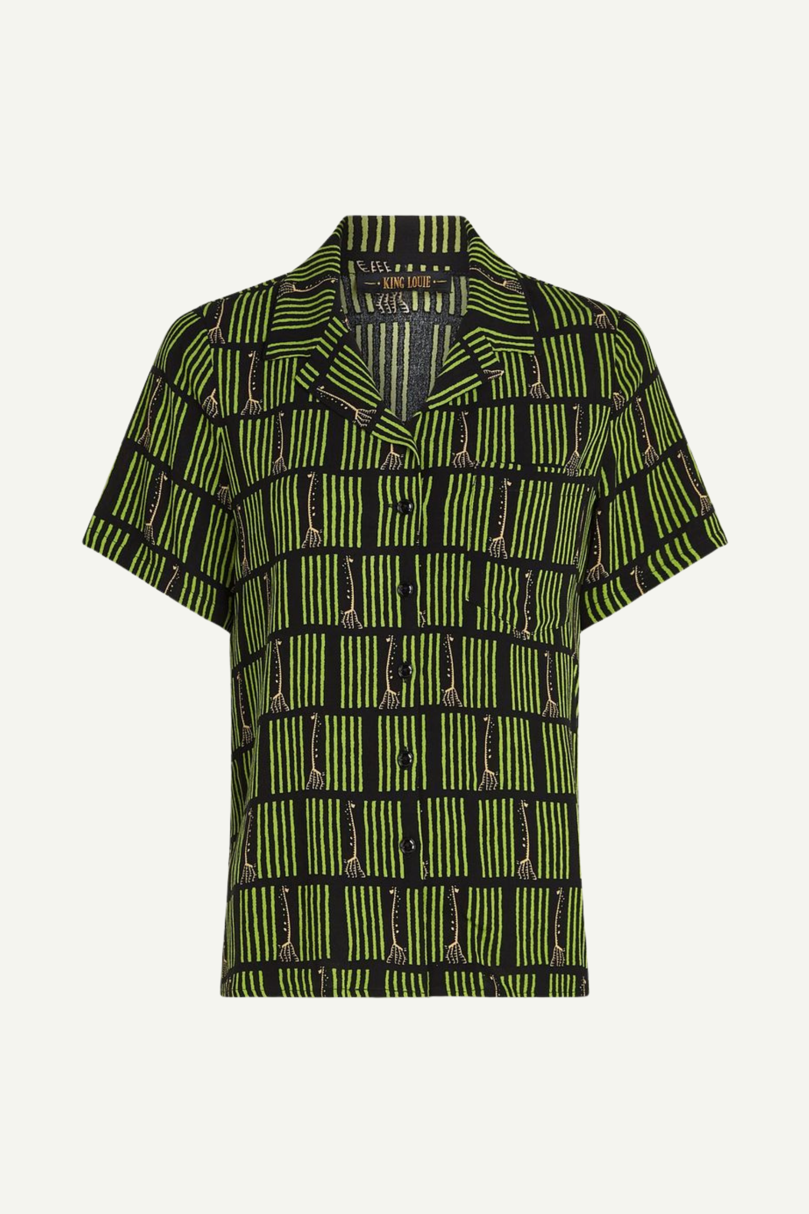 Die Bluse Medina Black von King Louie ist perfekt für einen lässigen Look. Mit aufgesetzten Taschen auf der Brust und dem animalischen Print ist sie ein echter Hingucker. Der lockerer Schnitt und die kurzen Ärmel bieten viel Bewegungsfreiheit. Das Webstoff-Material sorgt für angenehmen Tragekomfort und die Knopfleiste ermöglicht einen individuellen Look. Perfekt für den Sommer!