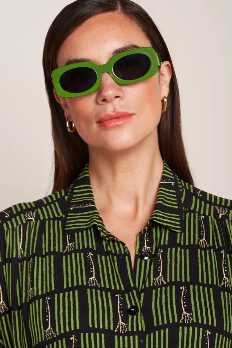 Das Kleid Mimi Tunic Medina Black von King Louie ist ein locker geschnittenes Tunikakleid aus Webstoff. Es verfügt über einen klassischen Umlegekragen, einen Knopfverschluss und Seitenschlitze. Die Eingrifftaschen auf der Frontseite sorgen für zusätzlichen Komfort. Durch den Animal Print wird das Kleid zu einem modischen Hingucker. Ohne Stretch, aber gerade geschnitten, bietet es dennoch ausreichend Bewegungsfreiheit.