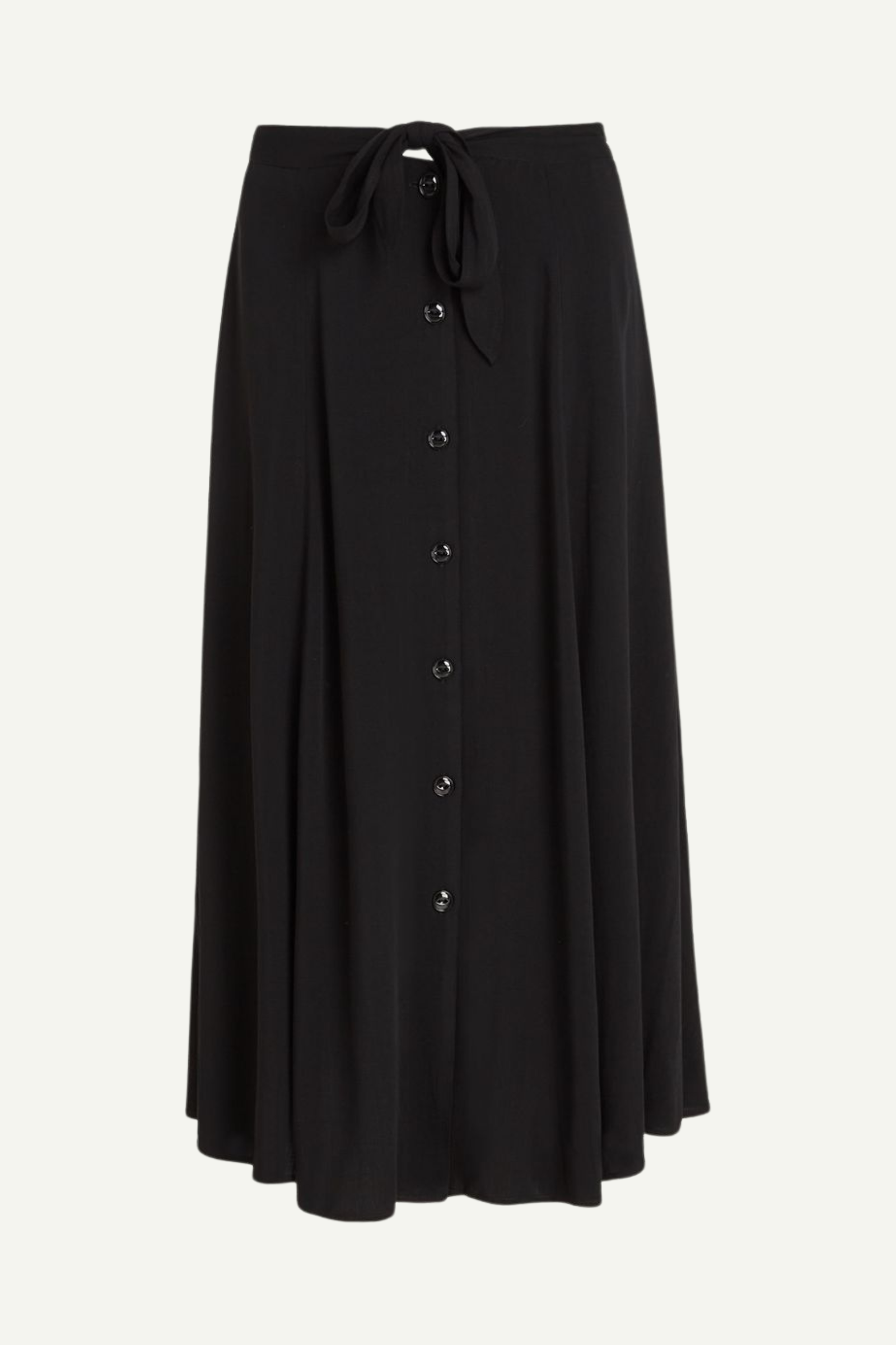 In dem Midi-Rock von King Louie wirst du dich rundum wohlfühlen. Die aus reiner Viskose gefertigte fließende Qualität umspielt sanft deine Beine und sorgt für ein angenehmes Tragegefühl. Die ausgestellte Silhouette und die durchgehende Knopfleiste verleihen dem Rock eine feminine Note. Abgerundet wird das Design durch das schmeichelnde Bindegürtel-Detail.