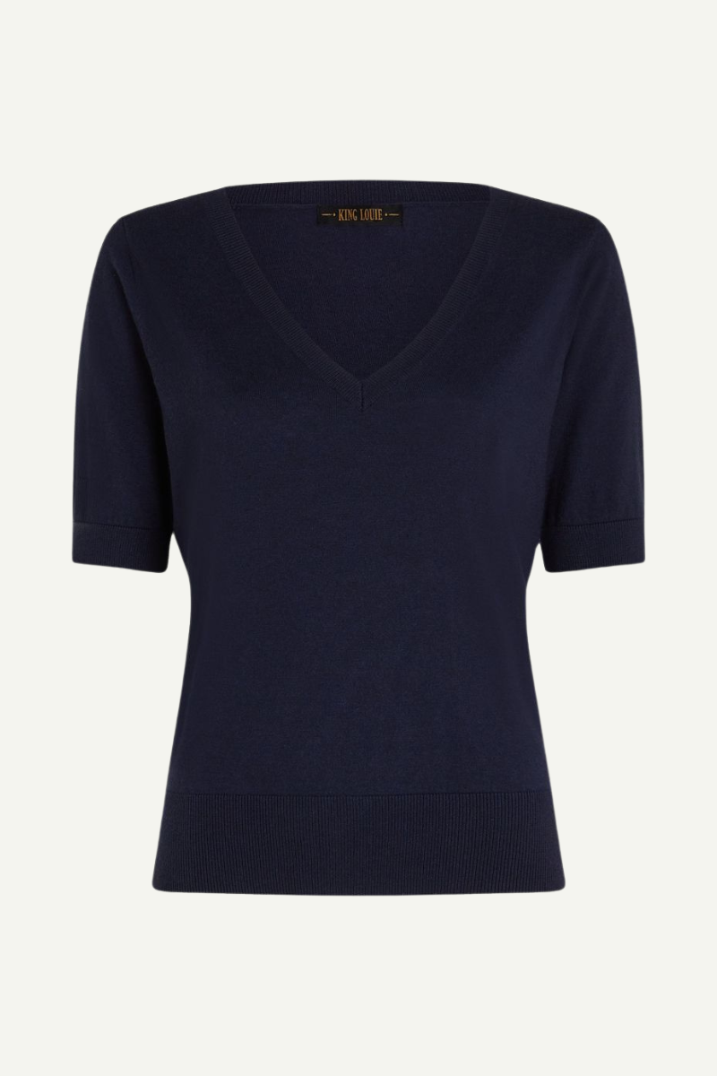 Entdecke den ultimativen Komfort mit dem Top Agnes V Cocoon von King Louie! Die verkürzten Ärmel, dem dehnbaren Material und dem V-Ausschnitt bietet es dir eine bequeme Passform. Das unifarbene Strickdesign verleiht dir zudem einen lässigen Look. Ein Must-Have für jeden Kleiderschrank!