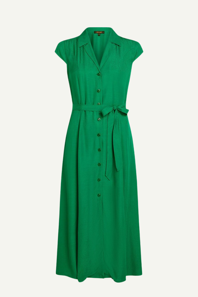 Das ultra-grüne Kleid Violante Saxon von King Louie zeigt stilvoll seine Schlitze auf Vorder- und Rückseite sowie seinen Reverskragen und gestaffelten Kappenärmel. Mit dem beiliegenden Bindegürtel wird die feminine Taille betont, während der ausgestellte Schnitt das Midi-Kleid zu einem wahren Hingucker macht. Perfekt für jeden Anlass, ohne dabei auf Komfort und Stil zu verzichten.