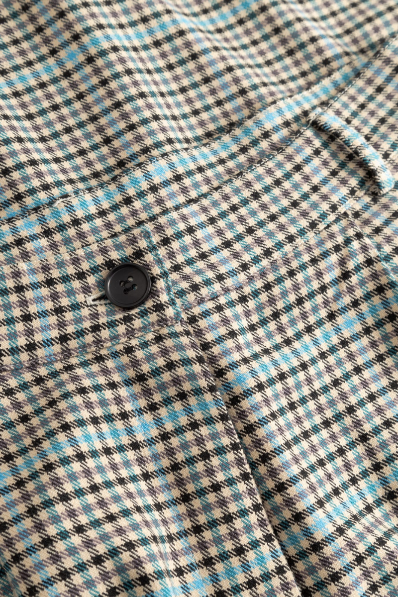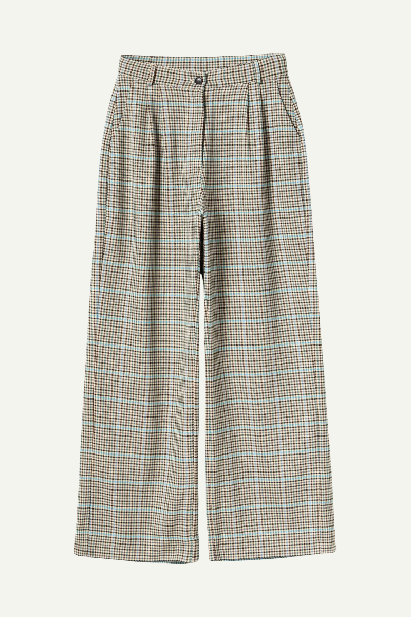 Die Hose Checkmate Blue von Mademoiselle YéYé überzeugt mit ihrem zeitlosen Karo-Design und klassischem Bundfaltenstil. Der leichte Webstoff sorgt für angenehmen Tragekomfort, während das lange, weite Bein eine elegante Silhouette kreiert. Praktische schräge Eingriffstaschen vorne und dezente Leistentaschen hinten verbinden Stil mit Funktion. Ideal für vielseitige Looks, die immer modern bleiben.