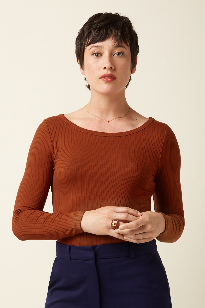 Das Longsleeve T-Shirt Lili Uni Rib in Spicy Brown von King Louie überzeugt mit einem klassischen Rundhalsausschnitt und langen Ärmeln. Hergestellt aus weichem, elastischem Viskose-Jersey-Rippstoff, bietet es eine angenehme Passform, die sich flexibel an Ihre Bewegungen anpasst. Perfekt für den ganzen Tag, verbindet es Komfort mit zeitlosem Stil.