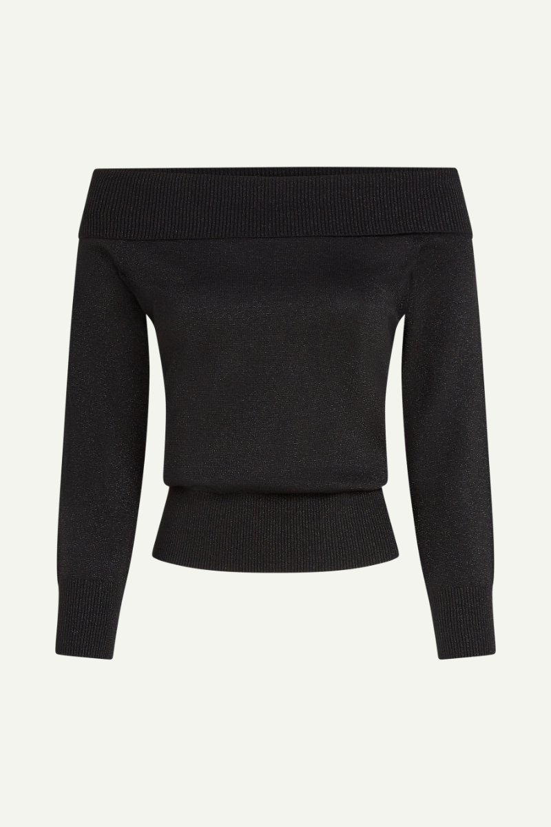 Der gestrickte Off-Shoulder-Pullover „Top Mirta Lapis Black“ von KING LOUIE vereint nachhaltige Bio-Baumwolle mit schimmerndem Lurex und sorgt für einen eleganten Look, den Sie flexibel on- oder off-shoulder tragen können. Die Rippdetails und der U-Boot-Ausschnitt bestätigen den modernen Stil, während die lange Ärmel mit Bündchen und der Stretch-Anteil für hohen Tragekomfort und eine optimale Passform sorgen. Ein vielseitiges Must-have, das jedem Outfit einen Hauch von Raffinesse verleiht.