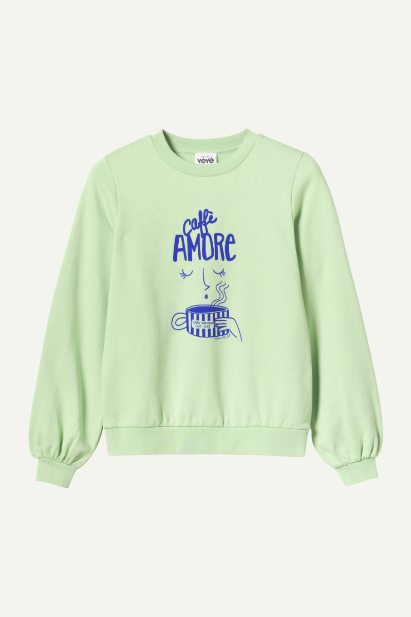 Das Sweatshirt Caffè Amore von Mademoiselle YéYé umhüllt dich mit nachhaltiger Gemütlichkeit dank seiner extra weichen, angerauten Innenseite. Die GOTS-Zertifizierung garantiert umweltfreundliche Herstellung. Mit seinem klassischen Rundhalsausschnitt, langen Ärmeln mit Bündchen und normaler Passform bietet es bequemen Sitz für entspannte Stunden. Der große, auffällige Aufdruck vorne macht das Sweatshirt zum stylischen Begleiter – perfekt für gemütliche Kaffee-Pausen und entspannte Tage zuhause.