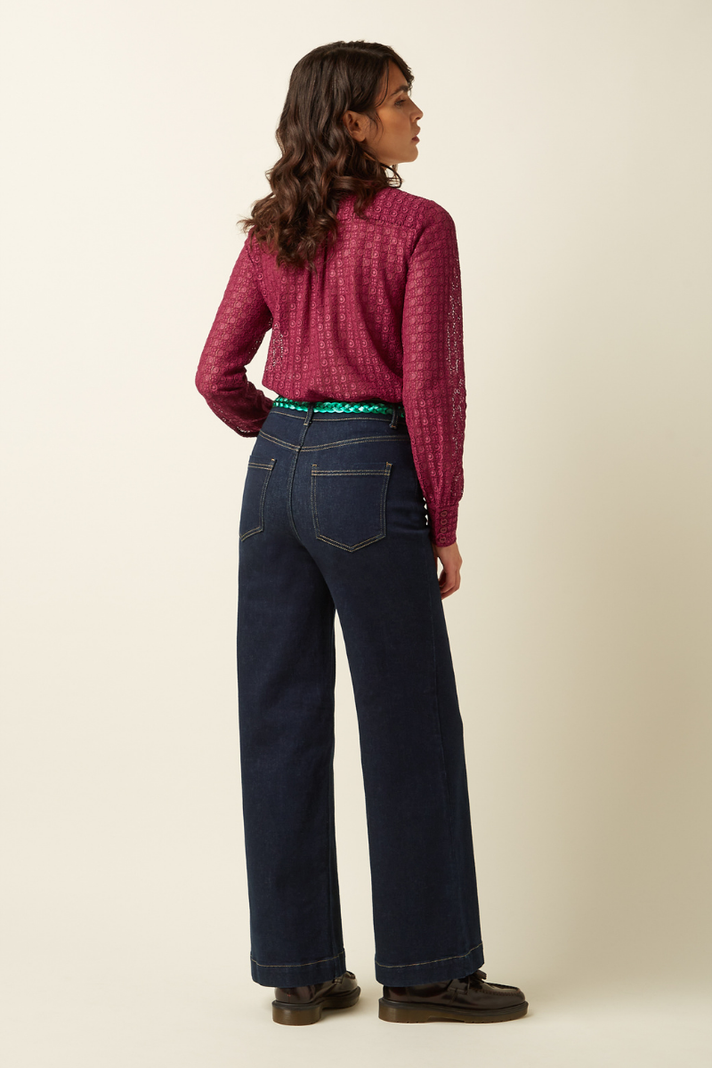 Erlebe mit der Hose "Paige Walker Denim" von King Louie höchsten Tragekomfort dank Stretchmaterial und hoher Leibhöhe. Der Bund mit Gürtelschlaufen sorgt für eine perfekte Passform, während der Reißverschluss mit Knopf einen sicheren Verschluss garantiert. Die weiten, ausgestellten Beine verleihen Ihnen eine moderne Silhouette, und zwei praktische Eingrifftaschen bieten Platz für Alltagsutensilien. Ideal für stilbewusste Looks mit gleichzeitig angenehmer Bewegungsfreiheit.