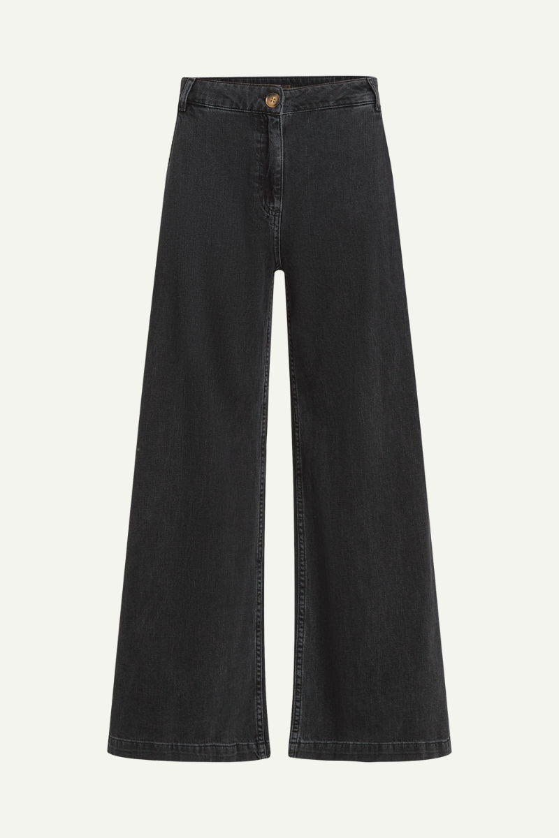 Die Jeanshose Peppa Petit Rock von King Louie überzeugt mit ihrem hohen Bund und der eleganten, weiten Beinführung. Aus hochwertiger, gewebter Baumwolle gefertigt, bietet sie dank schräger Taschen und einem Taillenbund mit Gürtelschlaufen nicht nur Stil, sondern auch Funktionalität. Der taillierte Schnitt sorgt für eine perfekte Passform, während der Knopf- und Reißverschluss für einfachen Tragekomfort sorgt.