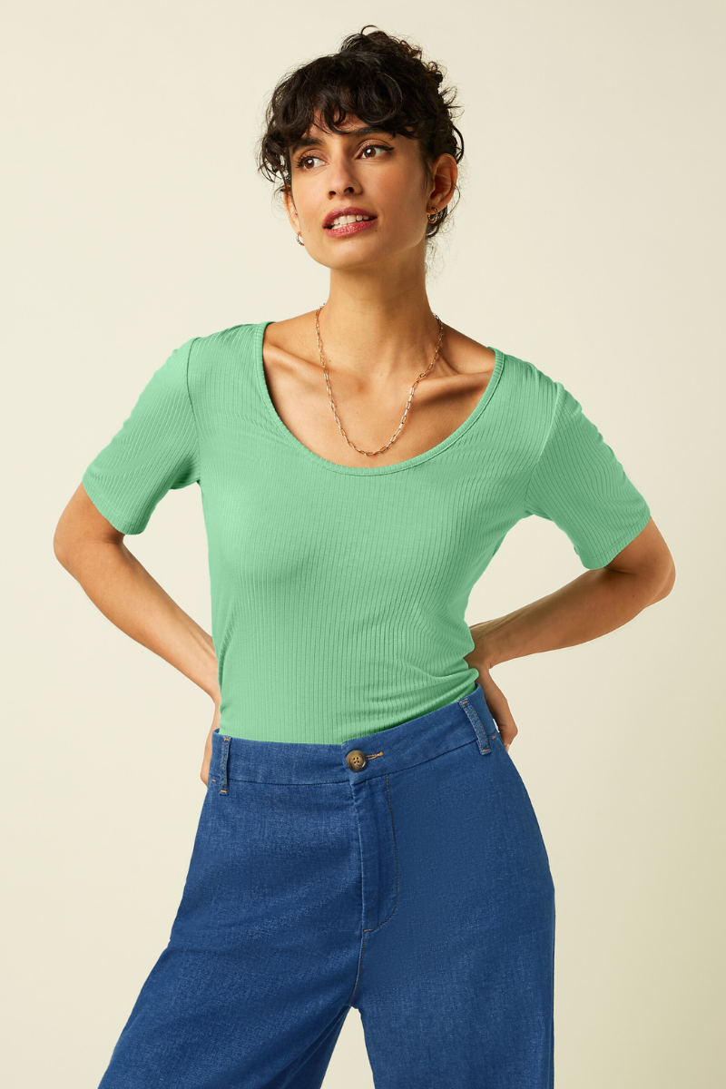 Das Top Carice von King Louie besticht durch seine zeitlose Eleganz und hohe Tragequalität. Der klassische Rundhalsausschnitt und die Kurzarmform bieten vielseitige Styling-Möglichkeiten für jeden Tag. Die taillierte Passform schmeichelt der Figur, während der elastische Jersey-Rippstoff mit Stretch-Anteil optimale Bewegungsfreiheit garantiert. Das unifarbene Design in Minty Meadow lässt sich mühelos kombinieren.