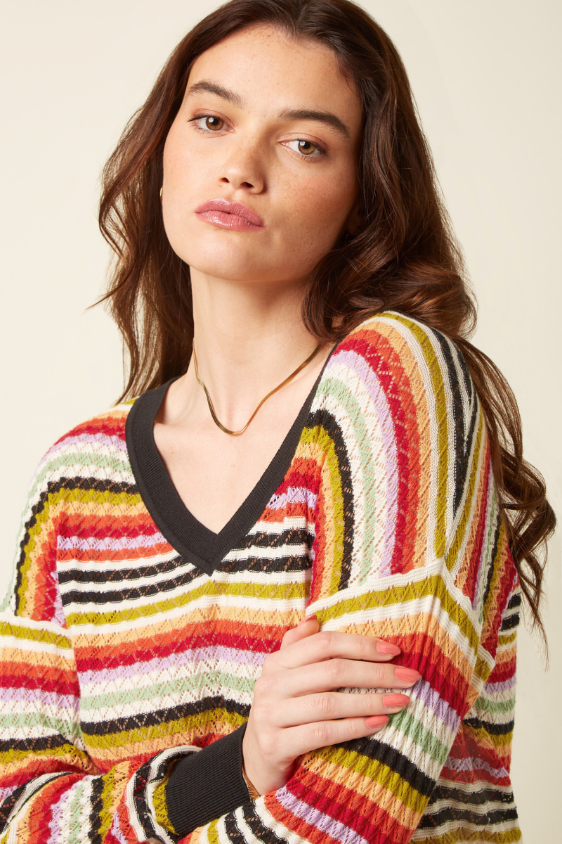 Dieser elegante Pullover von King Louie vereint nachhaltiges Design mit zeitlosem Stil. Gefertigt aus GOTS-zertifizierter Bio-Baumwolle. Der klassische V-Ausschnitt und die Langärmel schaffen eine vielseitige Silhouette, während das gestreifte Muster in mehreren Farbtönen einen subtilen visuellen Akzent setzt. Der Regular Fit bietet optimalen Tragekomfort für den alltäglichen Gebrauch.