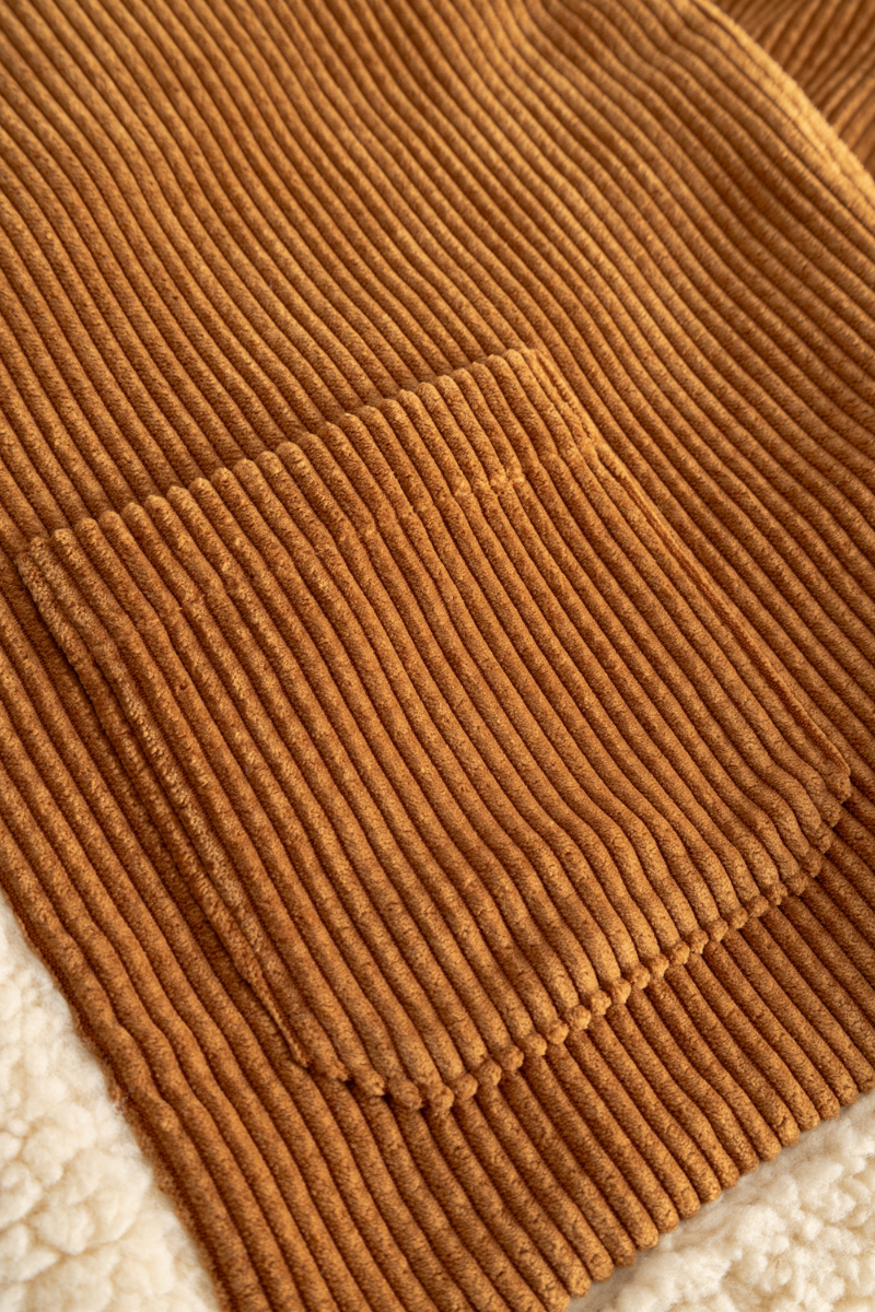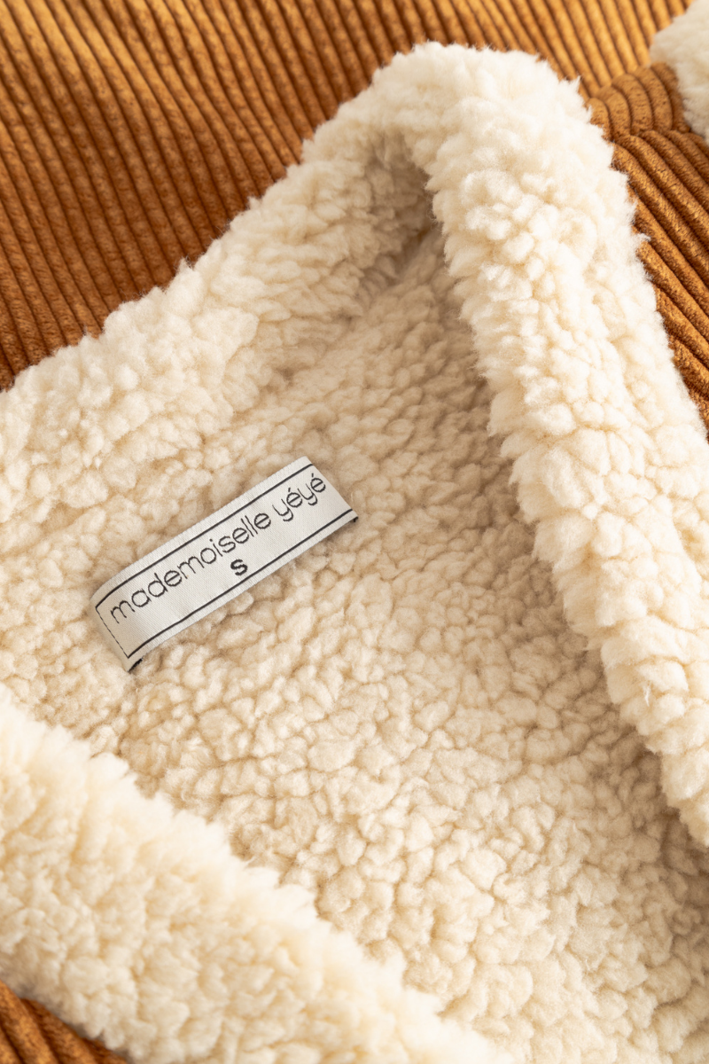 Das wendbare Gilet Cozy Retro von Mademoiselle YéYé vereint zwei Looks in einem – perfekt für den stylischen Herbst. Aus leichter, recycelter Kord-Qualität gefertigt, überzeugt sie mit einem kuscheligen Teddyfell auf der anderen Seite. Praktische Bindebänder und aufgesetzte Taschen runden das Design ab. Einfach über ein Kleid gezogen, setzt sie charmante Akzente und hält angenehm warm. Ein Must-have für alle, die Retro-Charme und Vielseitigkeit lieben!