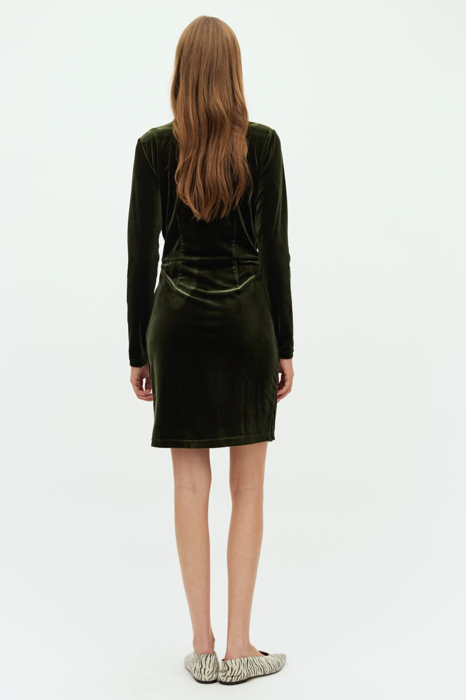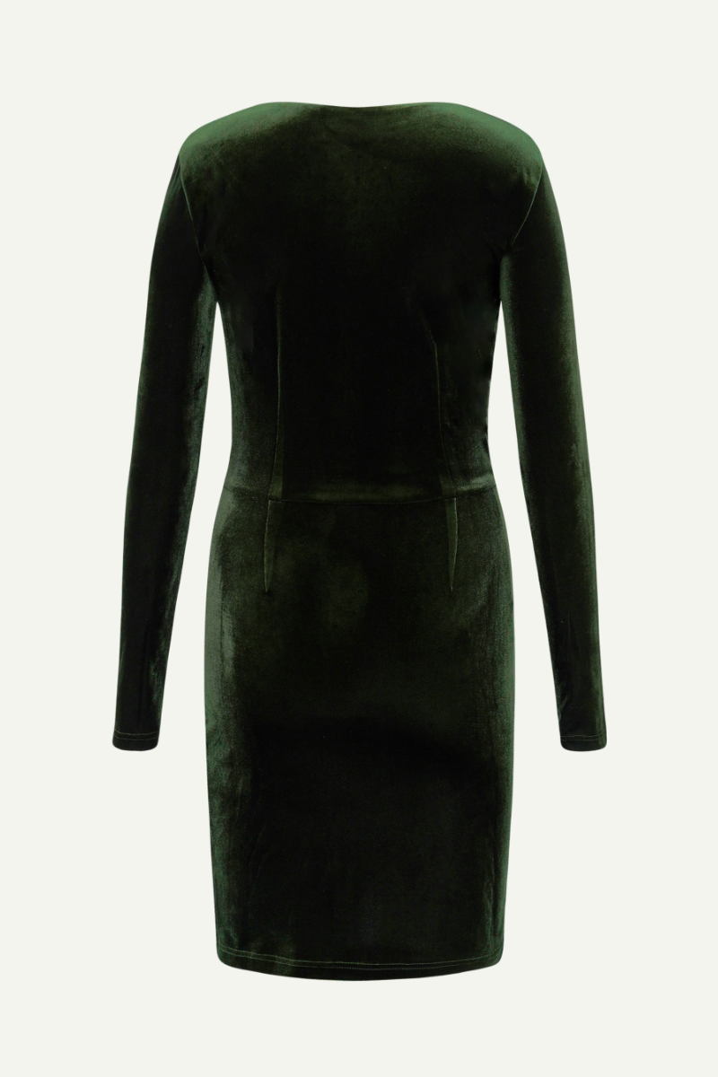 Das Kleid Madena von Mbym besticht durch seinen eleganten Wickeleffekt und das edle Veloursmaterial. Es betont die Silhouette auf schmeichelhafte Weise und sorgt für einen stilvollen Auftritt bei jedem Anlass. Die tiefgrüne Farbe verleiht dem Kleid eine klassische und zugleich moderne Note, die sich vielseitig kombinieren lässt.