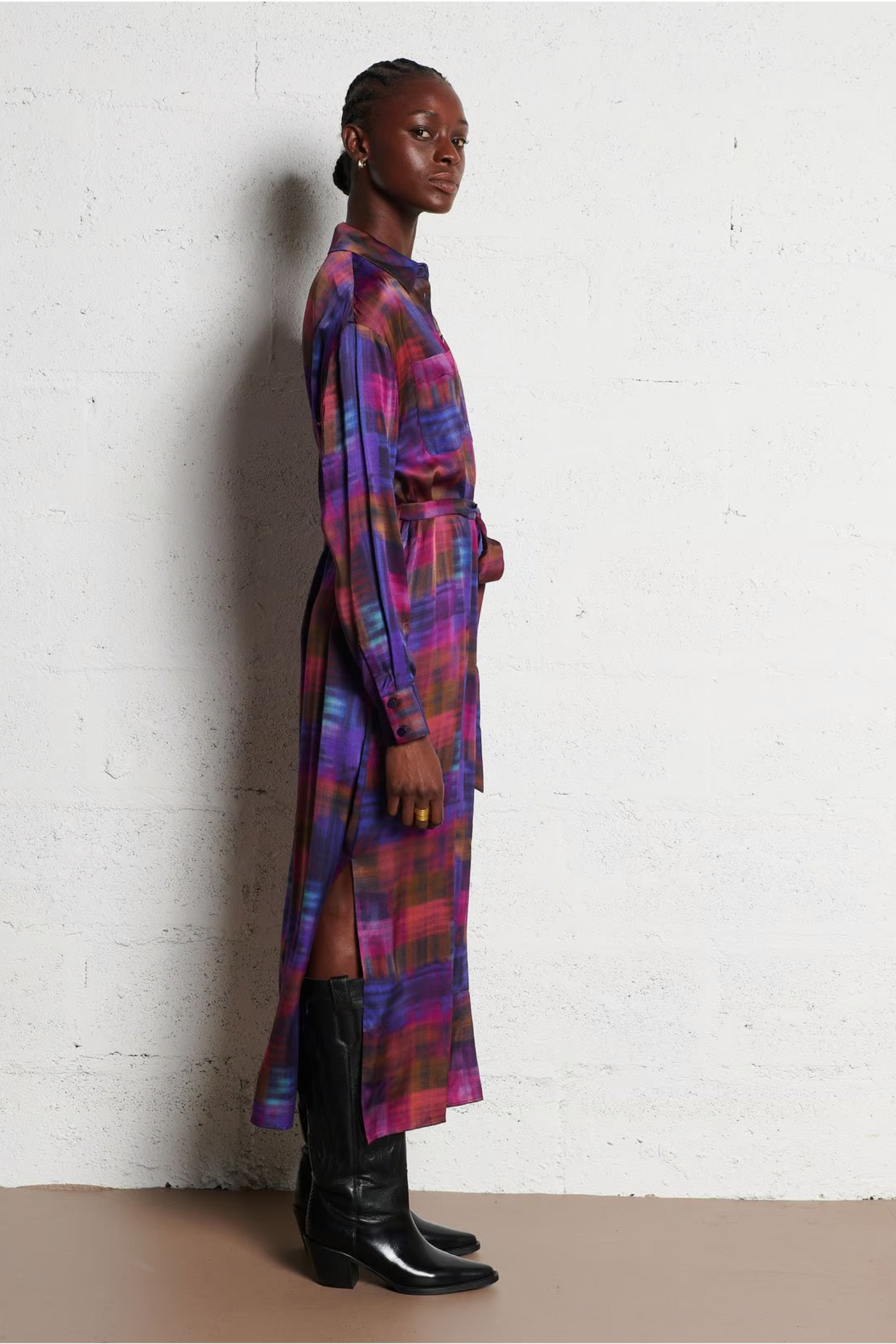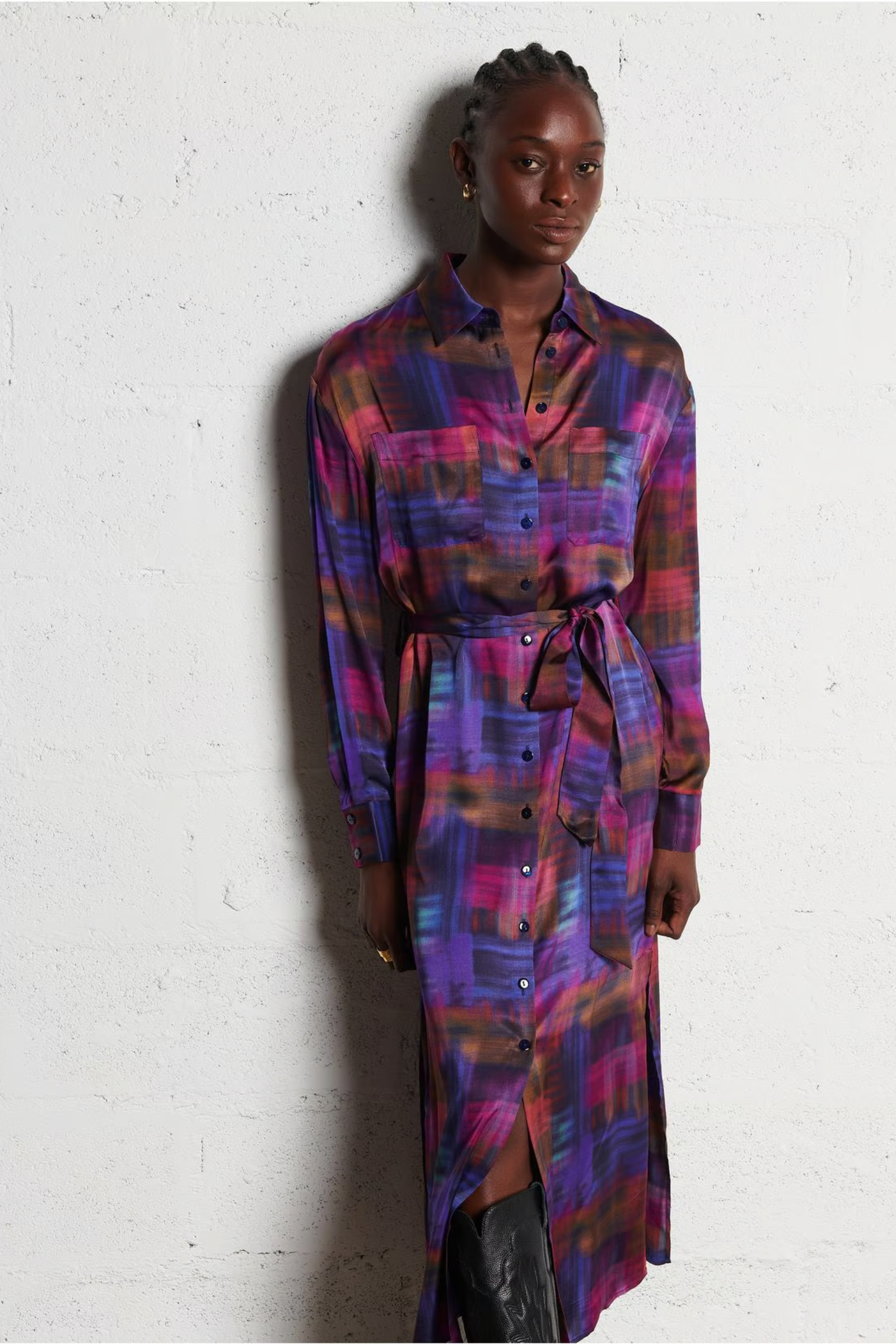 Mit seinem klassischen Kragen, der geraden Passform und den langen Ärmeln ist dieses Kleid von Des Petits Hauts ideal für jeden Anlass. Die Knopfleiste und die beiden Pattentaschen verleihen dem Kleid einen eleganten Touch. Zusätzlich kann es durch die beigefügte Taillengürtel individuell angepasst werden.