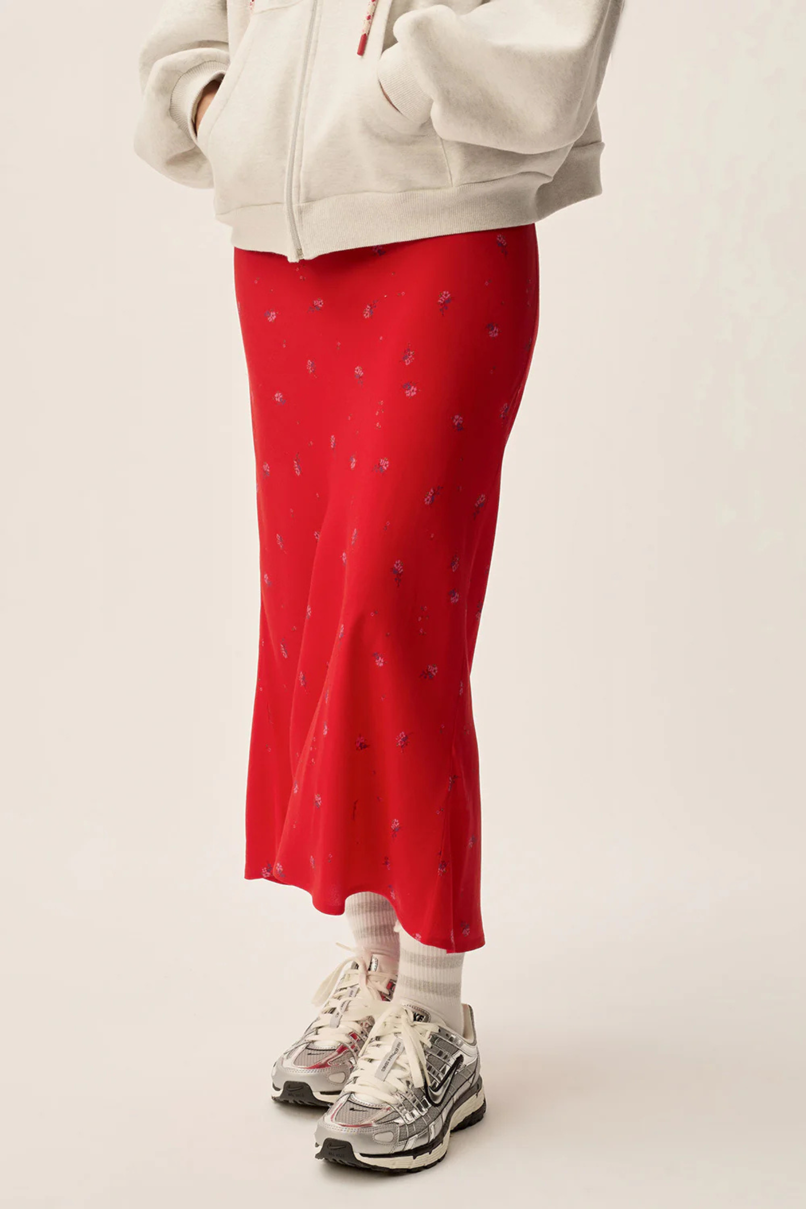 Dieser Rock von Des Petits Hauts ist eine perfekte Wahl für einen femininen und trendigen Look. Die knielange, leicht ausgestellte Form und der zarte Blumenmuster machen sie zu einem Hingucker. Die weiche Viskose in Crêpe-Qualität und der elastische Bund sorgen für einen bequemen Sitz und einen leichten Tragekomfort.