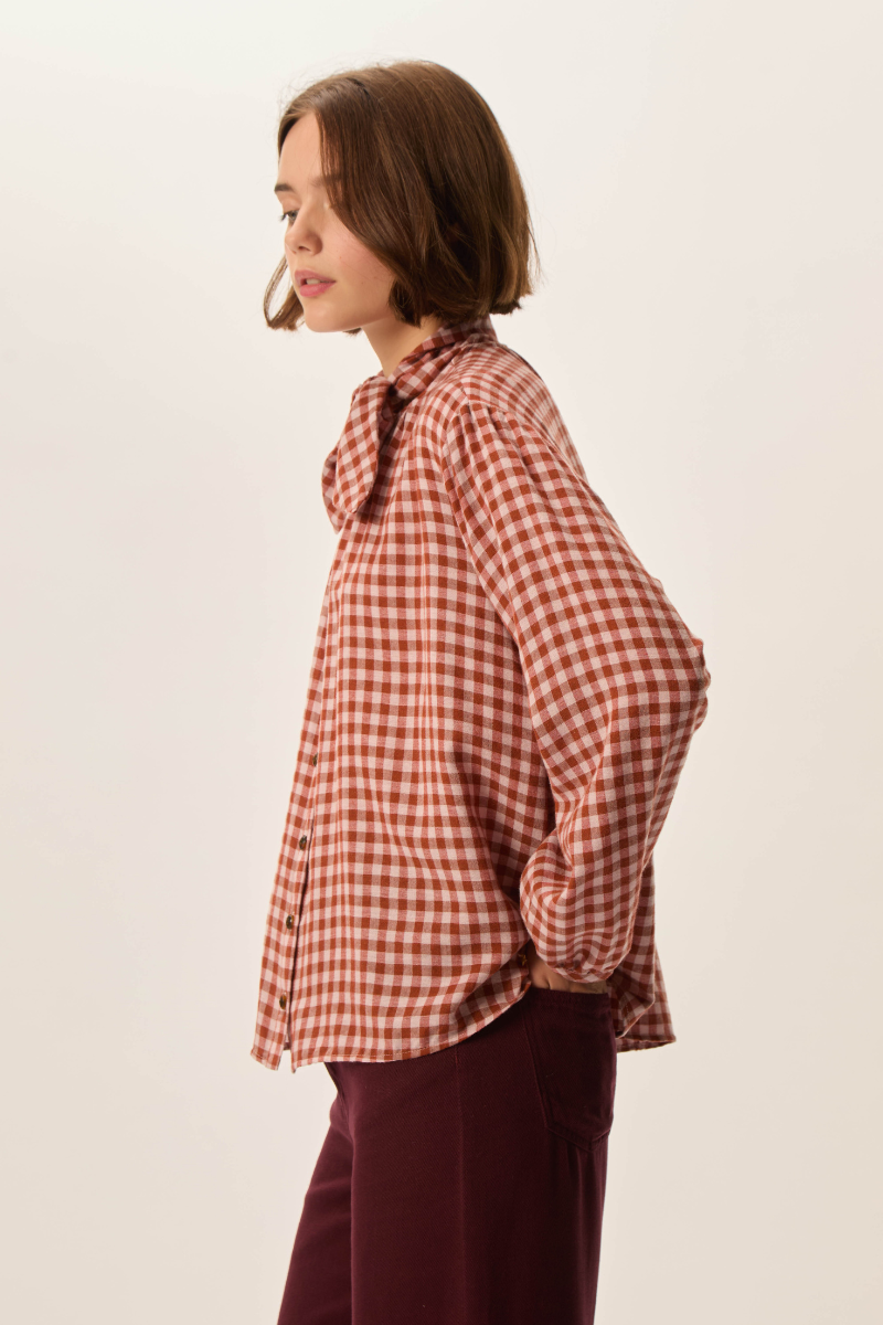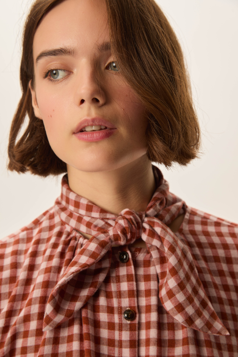 Die Bluse Rainbow Kansas verbindet traditionelle Country-Elemente mit femininer Eleganz. Das italienische Karomuster und die abnehmbare Lavallière, die wie ein Bandana gebunden wird, verleihen der Bluse einen individuellen Stil. Aus weicher Viskose und Wolle gefertigt, bietet sie angenehmen Tragekomfort und einen edlen Fall. Die gerade Schnittführung, die langen Ärmel mit engem Bündchen sowie die dezenten Knöpfe runden das Design ab – perfekt für stilbewusste Frauen, die klassischen Chic mit modernen Details lieben.