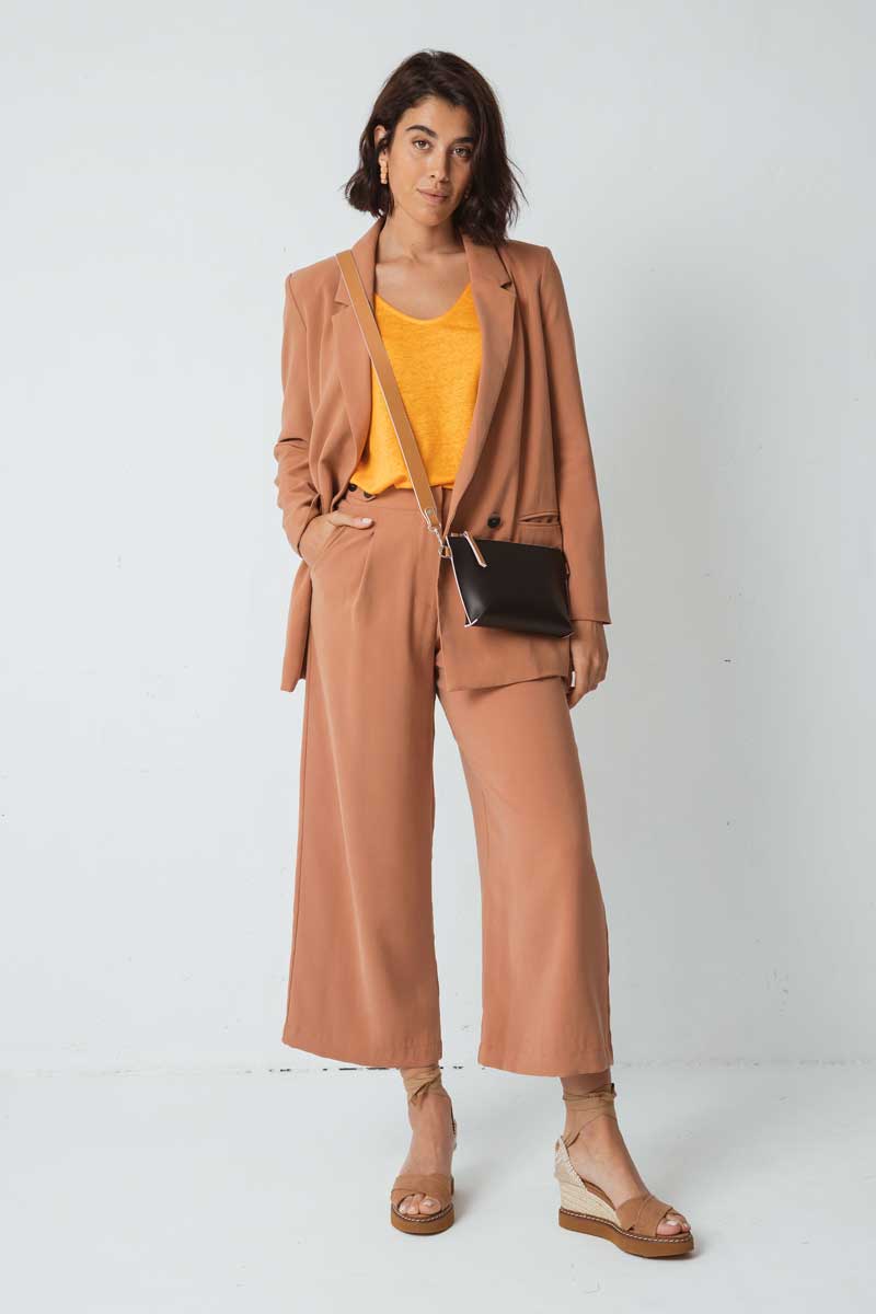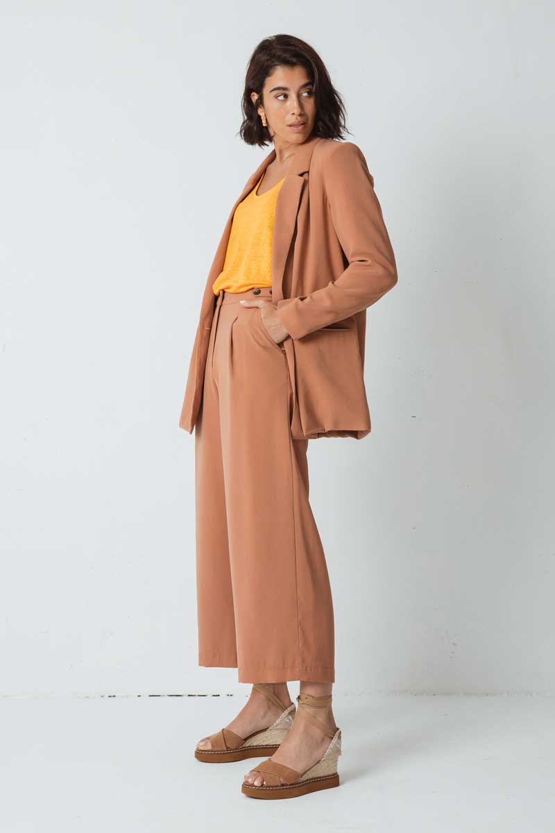 Culotte-Hose, schräge Taschen und Reißverschluss vorne. Fließendes, mittelschweres Twill-Gewebe.