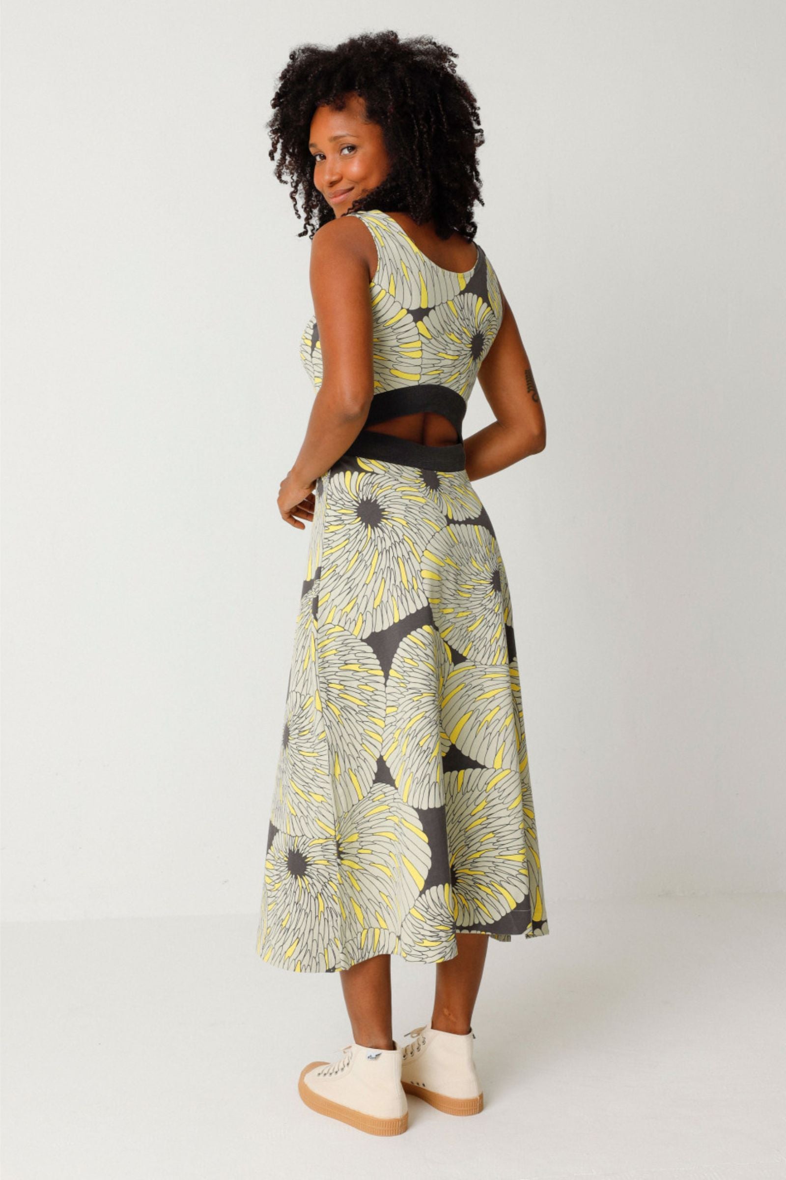 Kleid von SKFK aus GOTS-zertifizierter Bio-Baumwolle. Bietet nicht nur ein tolles Tragegefühl, sondern auch einen einzigartigen Look mit dem orientalischen Multicolor-Print. Das feminine Rücken-Detail, die bequeme Stretch-Passform und die natürliche Taillierung machen das Midi-Kleid zum idealen Begleiter für jeden Anlass.