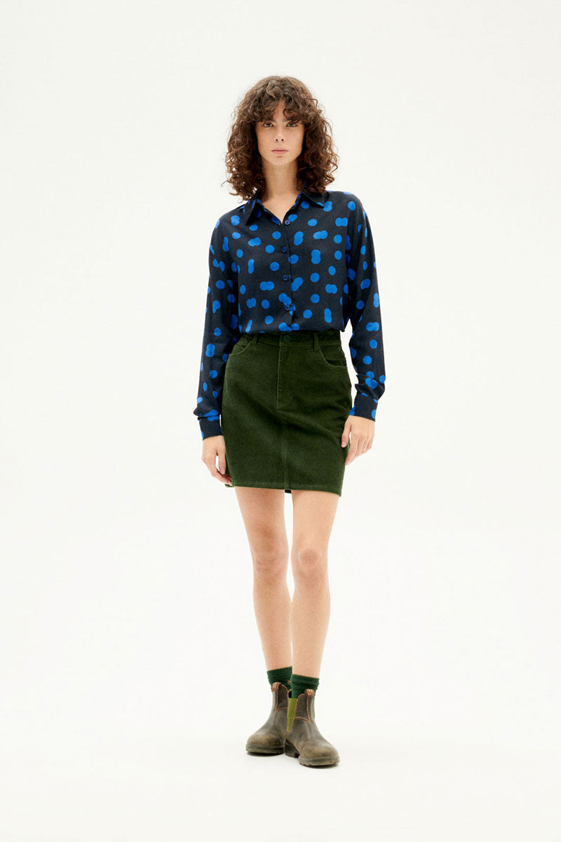Warmer Cord Mini-Rock mit seitlichen Eingriffstaschen, Knopf, Vertikaler naht und Reissverschluss vorne. Gurtlaschen und zwei Taschen hinten. Dieser Manchester-Jupe aus Bio-Baumwolle ist wunderbar kombinierbar dient somit als Alltags-Basic, welches dich nicht im Stich lassen wird.