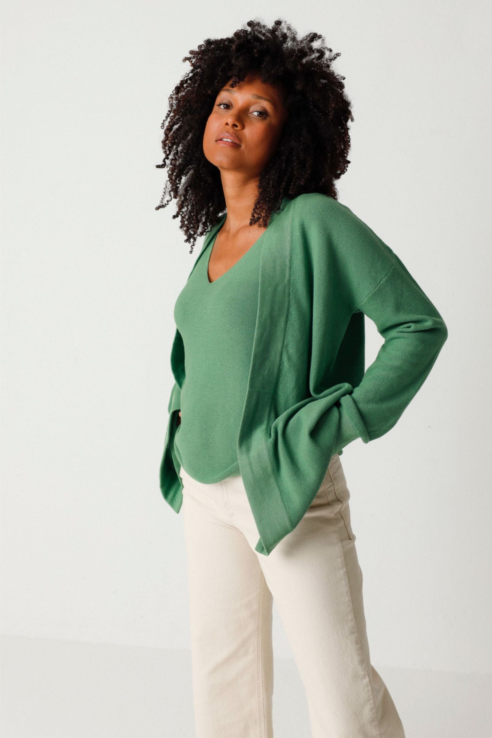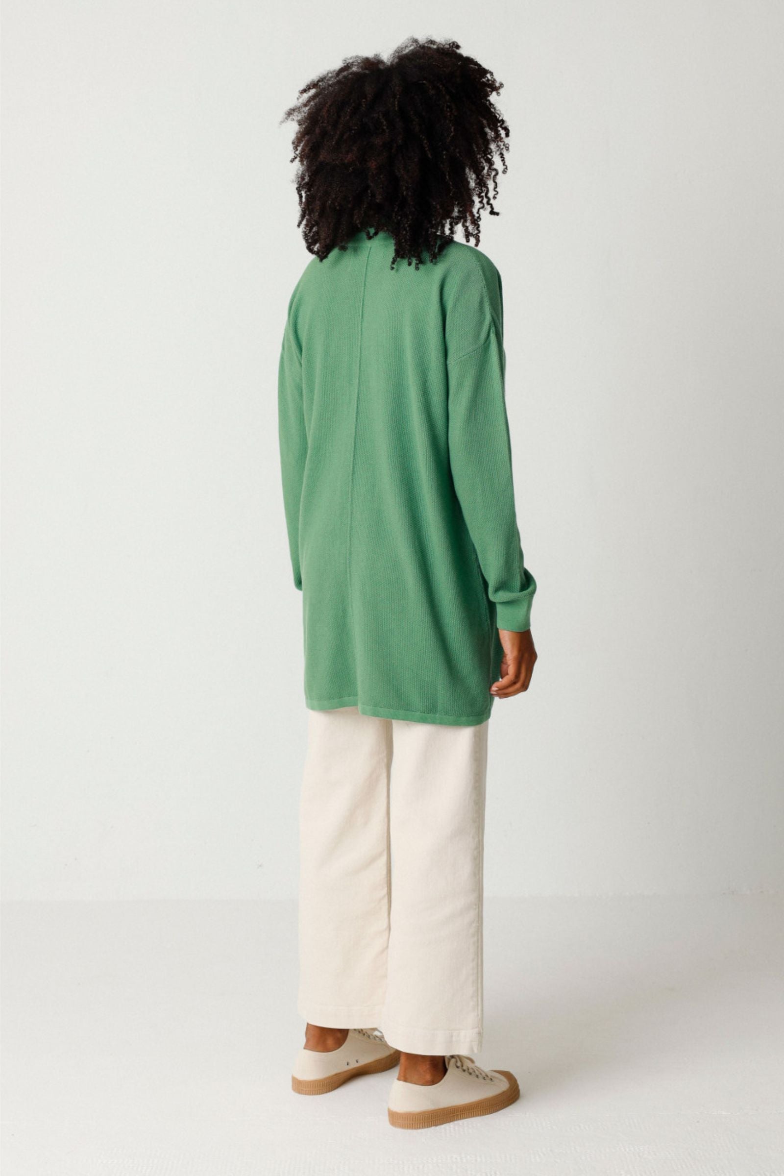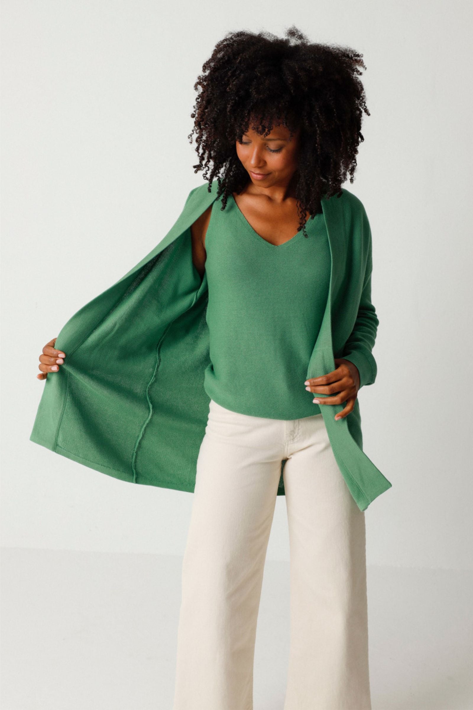 Cardigan von SKFK, hergestellt aus GOTS-zertifizierter Bio-Baumwolle mit höchstem Tragekomfort. Sein langer offener Schnitt ohne Kragen verleiht einen modernen Look.