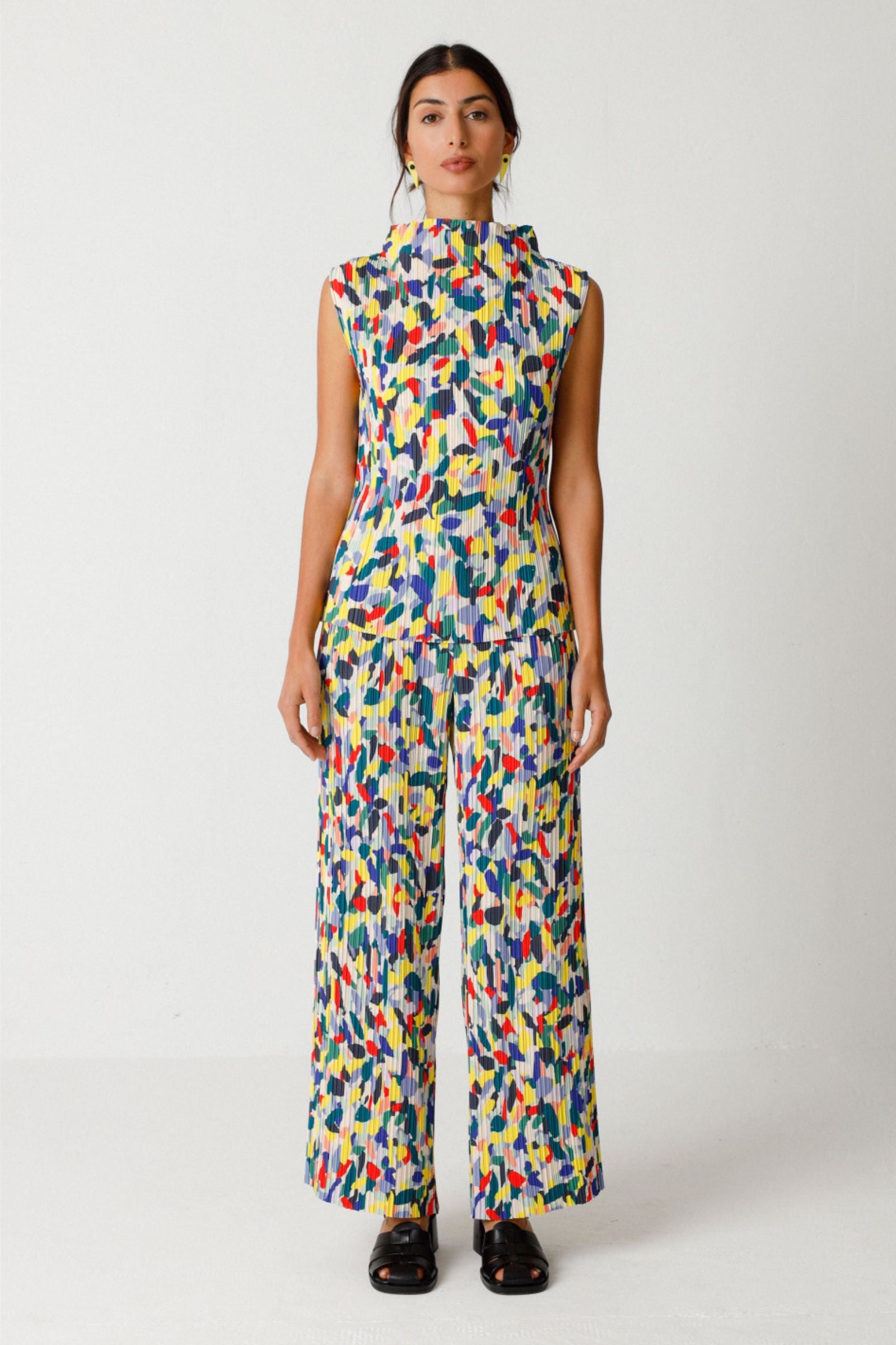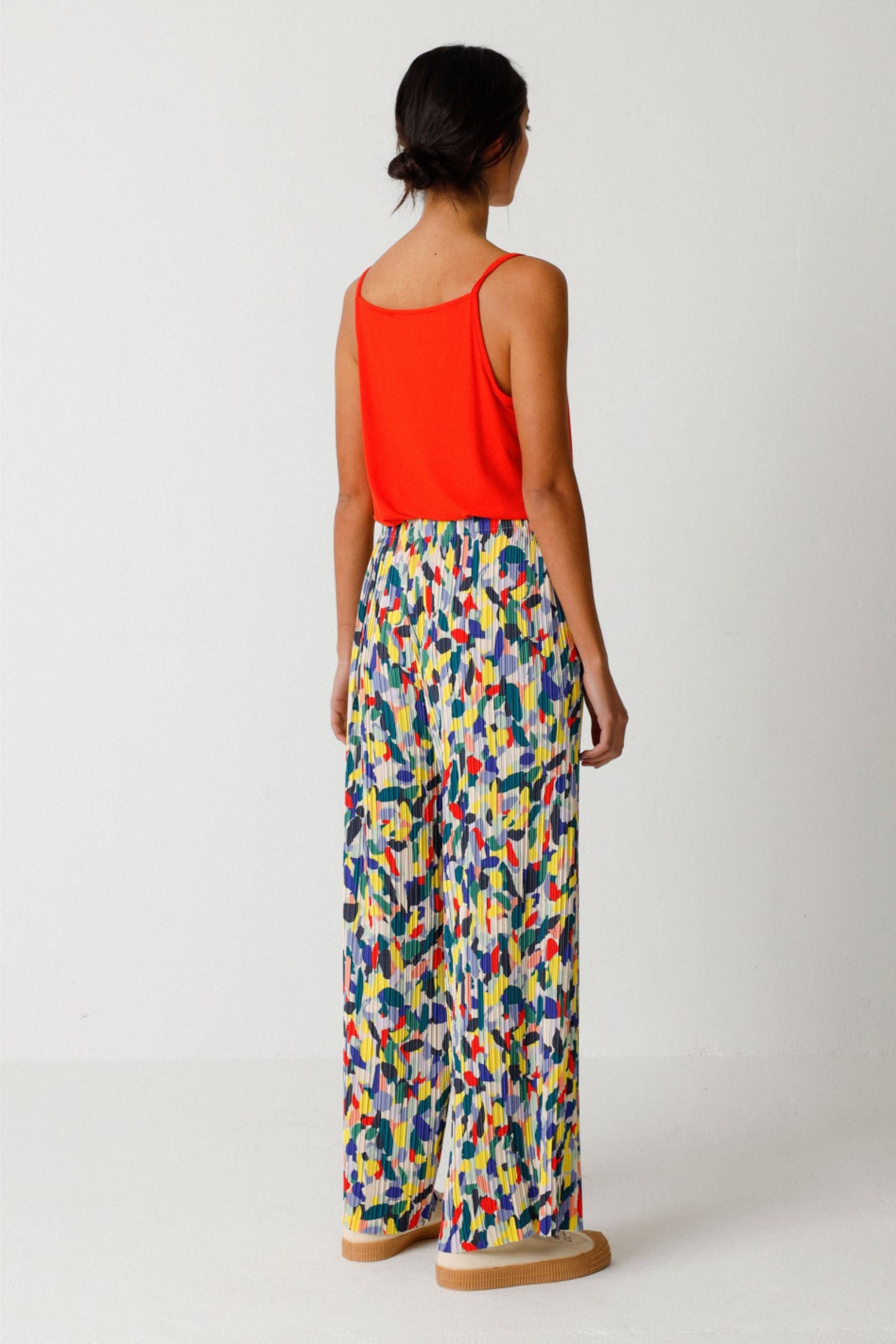 Die perfekte Hose für Bequemlichkeit mit Stil. Der dünne, plissierte Stoff und der elastische Bund sorgen für ein angenehmes Tragegefühl. Mit dem farbenfrohen Druckmuster ist die Hose ein garantierter Hingucker.