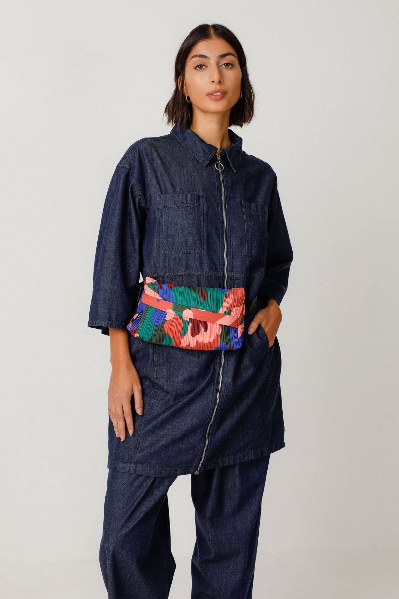 Auf der Suche nach der perfekten Tasche für unterwegs? Die Ador Bag Confettis ist die ideale Wahl! Dank der diagonalen Plisseefalten und der zylindrischen Form ist sie nicht nur ein modisches Accessoire, sondern auch praktisch. Die Essentials sind sicher in der versteckten Reißverschlussöffnung verstaut. Verstellbarer Nylonriemen und Druckknopfverschluss machen die Tasche einfach zu tragen. In den Maßen 254 x 152 mm passt sie perfekt um die Taille.