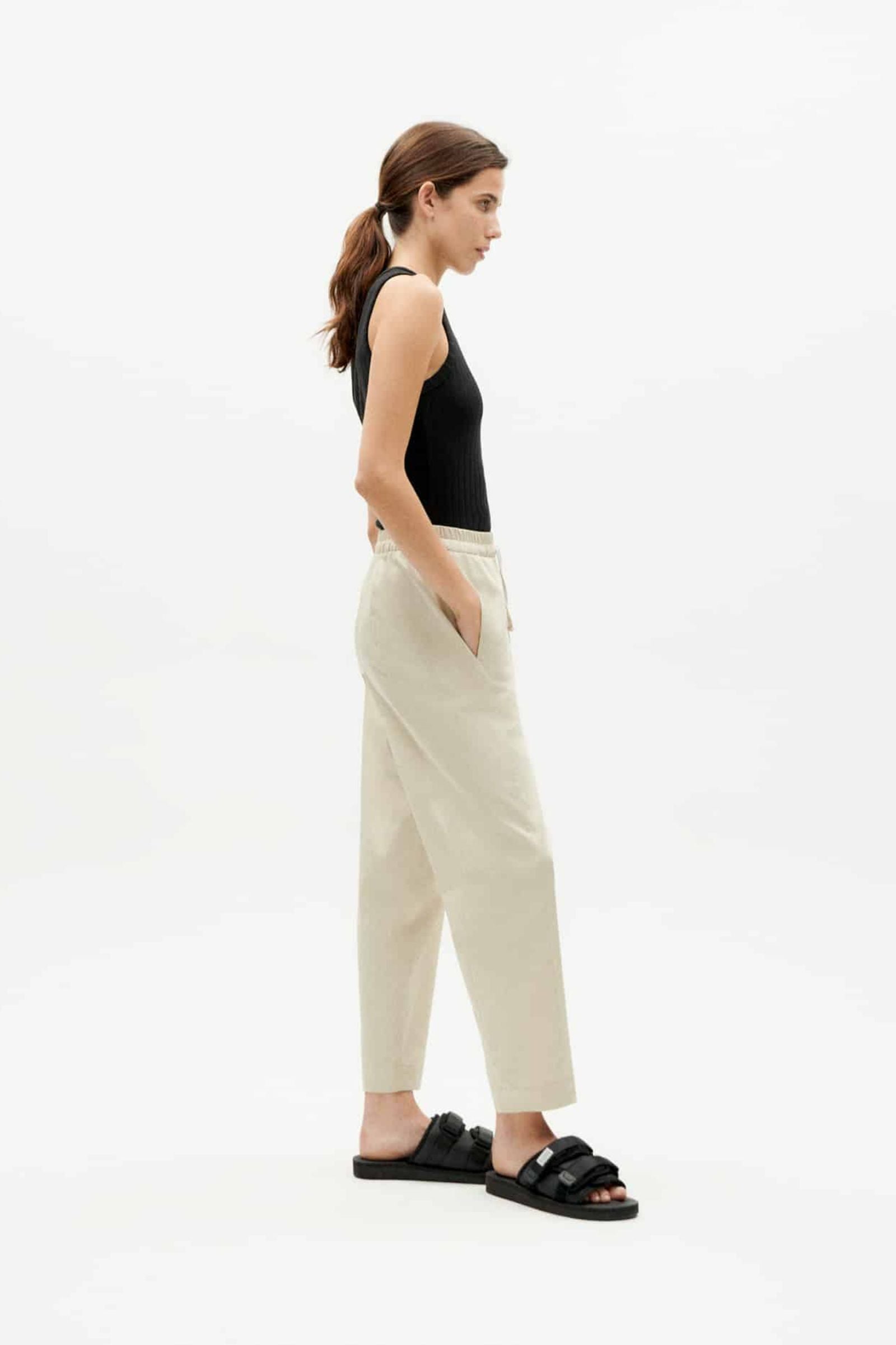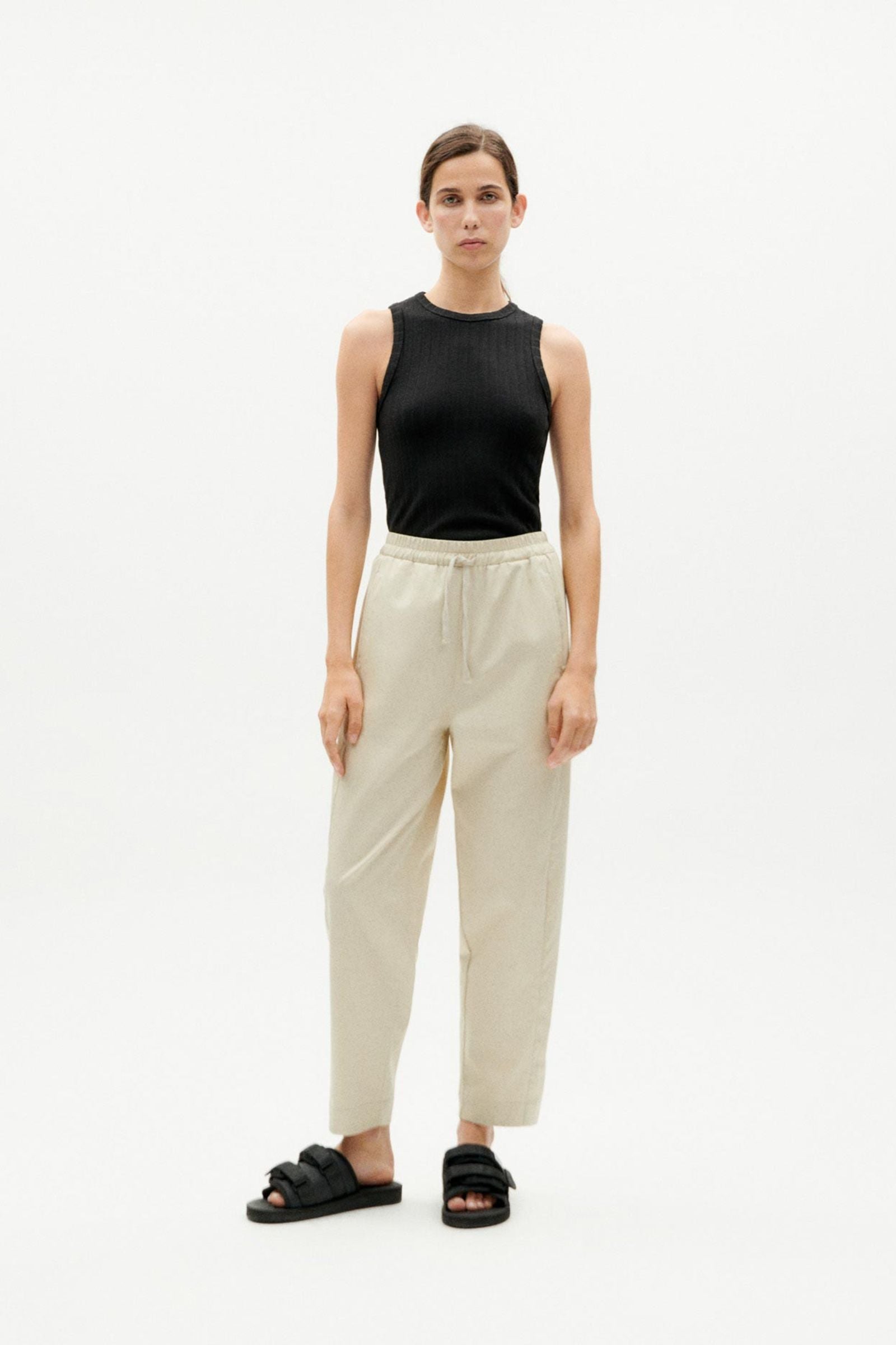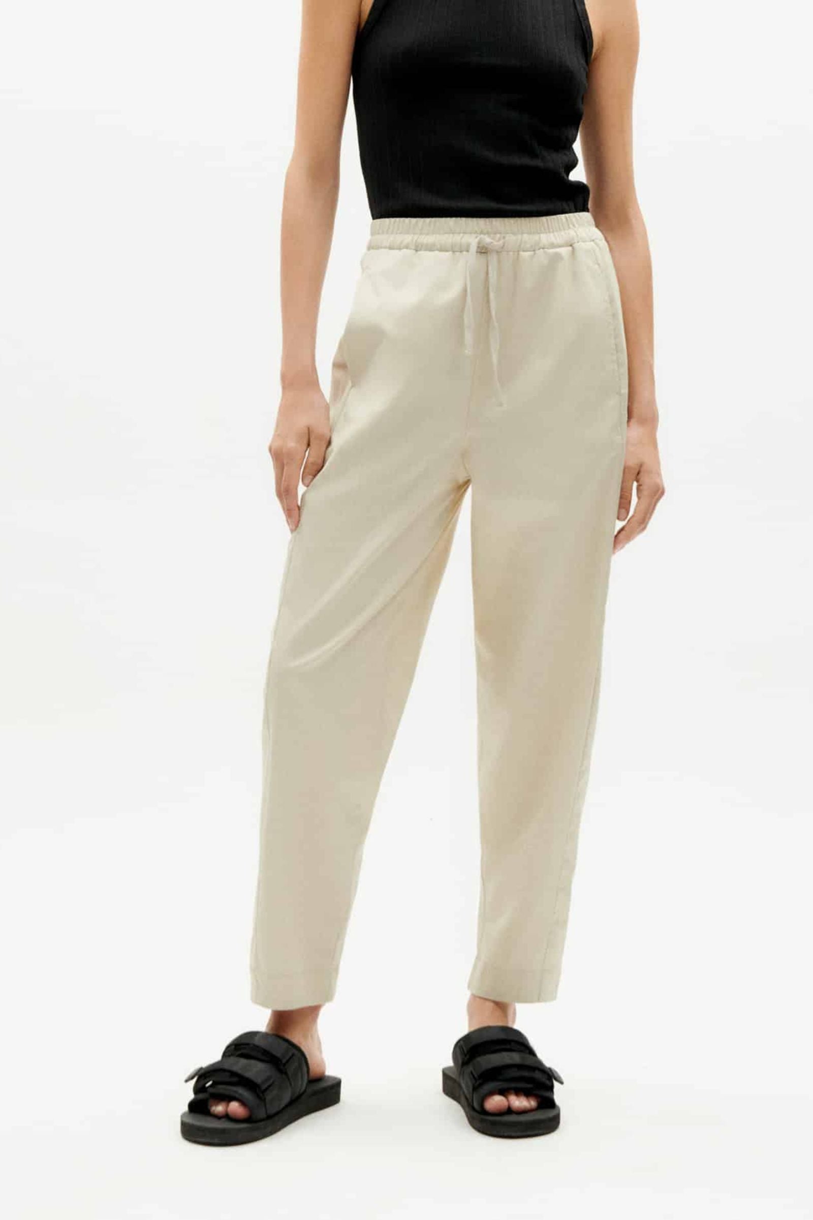 Die entspannte Passform und der verstellbare, elastische Bund sorgen für einen perfekten Sitz dieser schönen Sommerhose von Thinking MU. Aus Bio-Baumwolle und SeaCell™, (einer umweltfreundlichen Faser aus Holz und Meeresalgen). Mit Seitentaschen und einer langen Länge für bequemen Alltagsstil.