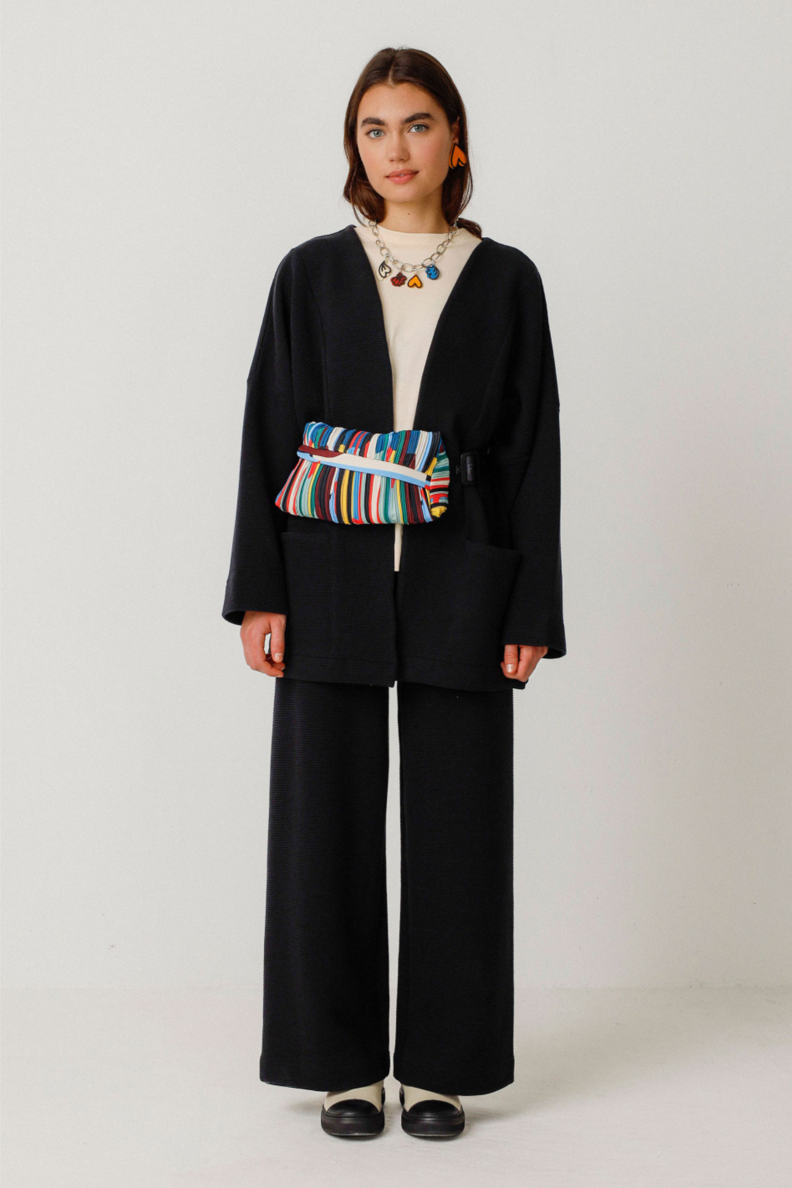 Die Tasche Ador Bag Multicolour bietet nicht nur Style, sondern auch Funktionalität. Die diagonale Plissee-Stofftasche hat eine zylindrische Form und lässt sich dank des verstellbaren Nylongurts bequem tragen. Mit dem verdeckten Reißverschluss und dem Druckknopfverschluss bleiben Ihre Wertsachen sicher verstaut. Die Abmessungen von 254 x 152 mm machen sie zur perfekten Größe für unterwegs.