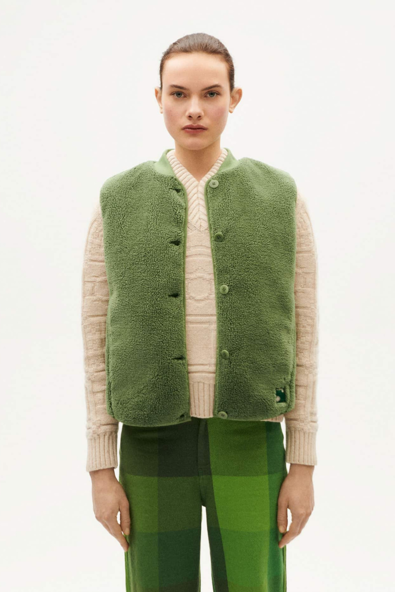 Die Jacken-Weste von Thinking MU ist die perfekte Ergänzung für dein Outfit. Der hohe Kragen und der reguläre Schnitt bieten hohen Tragekomfort. Die Ärmellosigkeit und Knopfverschlüsse machen sie ideal für jede Jahreszeit. Mit geräumigen Taschen und Innentaschen ausgestattet, bietet sie genügend Stauraum. Gefertigt aus recyceltem Polyester und dickem Schafsleder, garantiert sie Langlebigkeit und Stil. Eine kurze Länge sorgt für modischen Look.