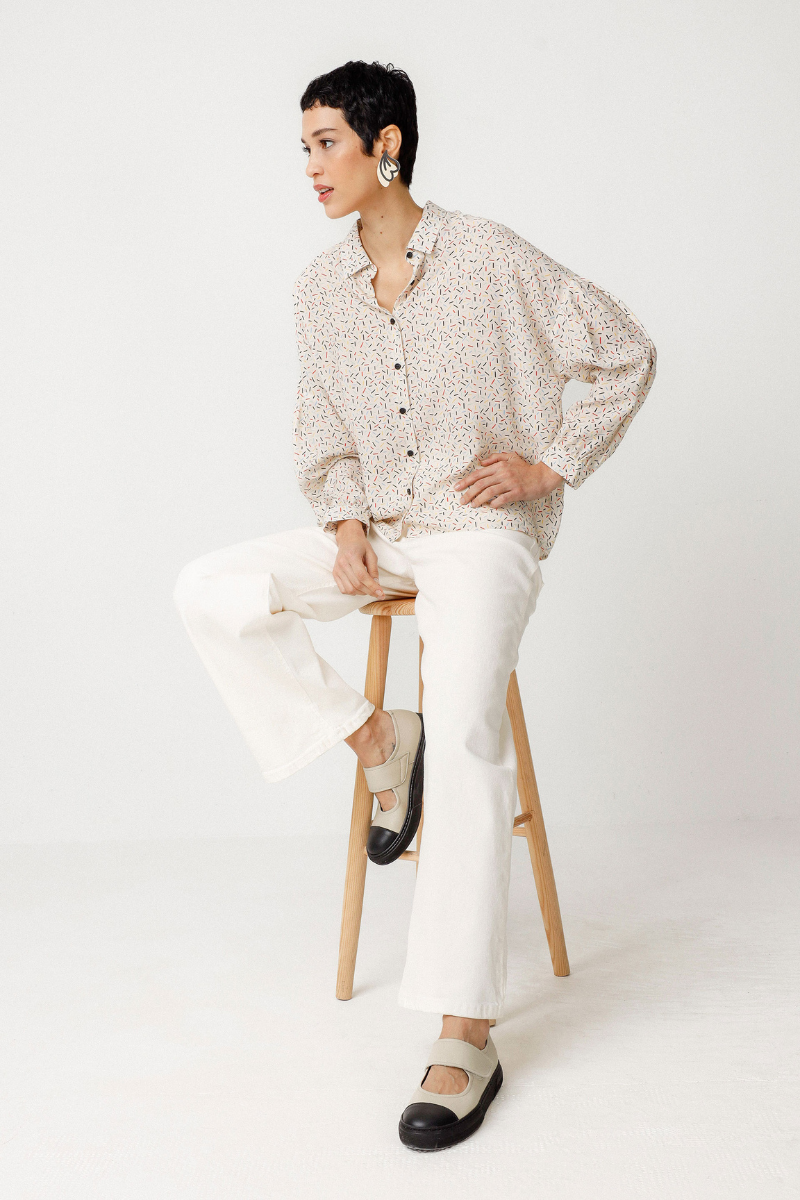 Dieses lässige Shirt von SKFK ist ein locker sitzendes, geblümtes Button-Down-Hemd mit normalem Kragen, überschnittenen Schultern und fallenden Falten an den langen Ärmeln mit Knopfmanschetten. Eine modische Wahl für jeden Anlass.