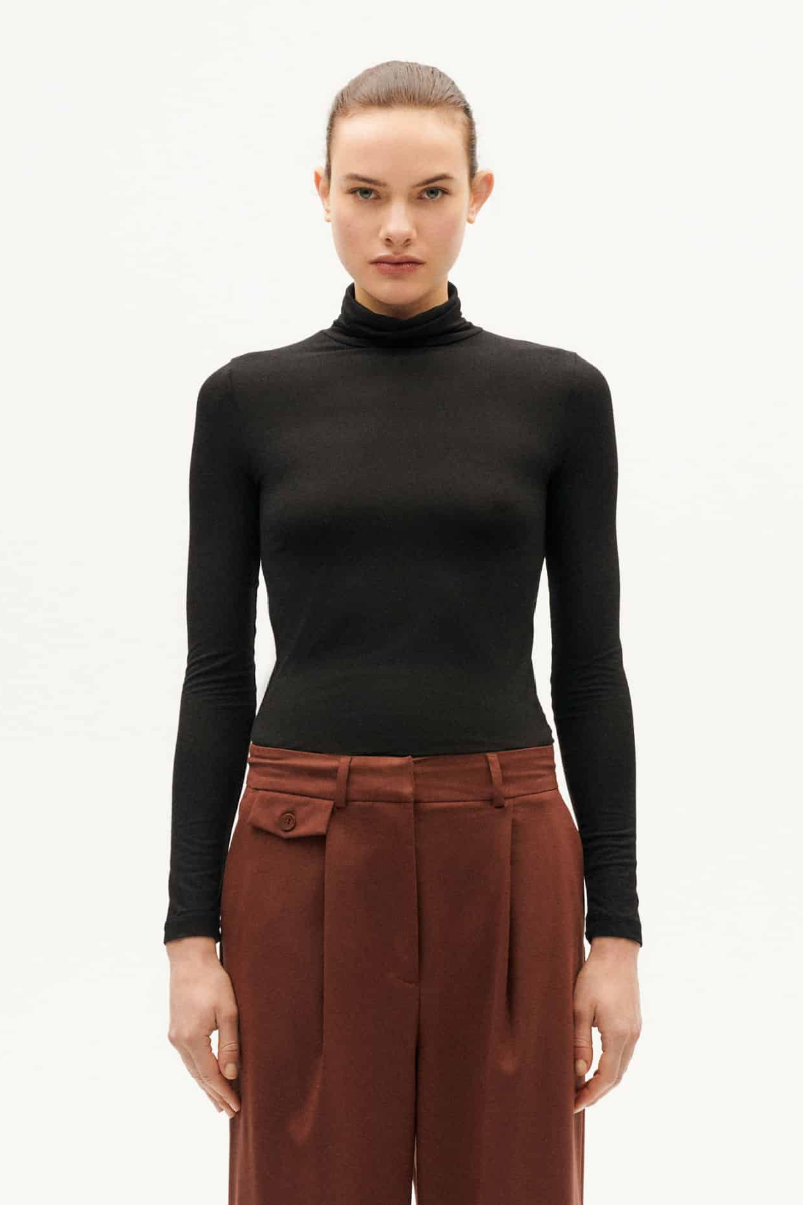 Longsleeve Rollkragen von Thinking MU mit anliegender Passform, ideal als Layering-Piece und Garderoben-Basic