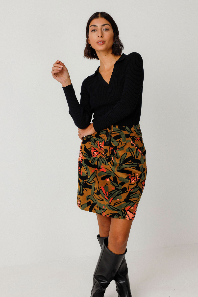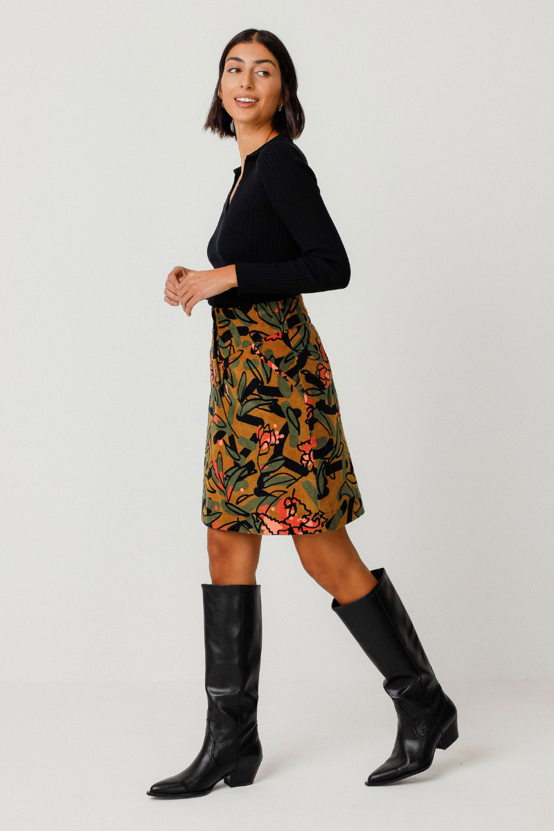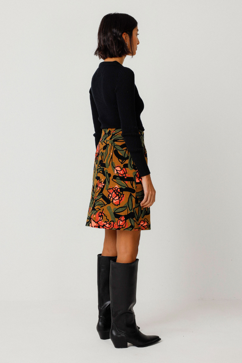 Der Rock Izaro-GOTS von SKFK ist ein Must-Have in deinem Kleiderschrank! Mit seiner hohen Taille, den praktischen Taschen und dem Knopfverschluss vorne ist der A-Linienrock nicht nur schick, sondern auch funktional. Die bunte Blumenmuster verleiht jedem Outfit eine feminine Note. GOTS zertifiziert für eine nachhaltige Produktion.