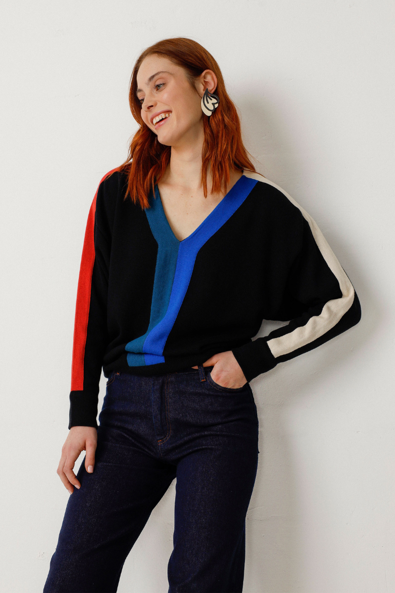 Entdecke die perfekte Mischung aus Stil und Nachhaltigkeit mit dem Pullover Gadea-GOTS von SKFK. Genieße den modernen Look dieses Pullovers mit Farbblock-Muster, V-Ausschnitt und langen Fledermausärmeln. Die GOTS-Zertifizierung garantiert dir zusätzlich höchste Qualität und umweltfreundliche Materialien aus Bio-Baumwolle. Garantiert dein neues Lieblingsstück!