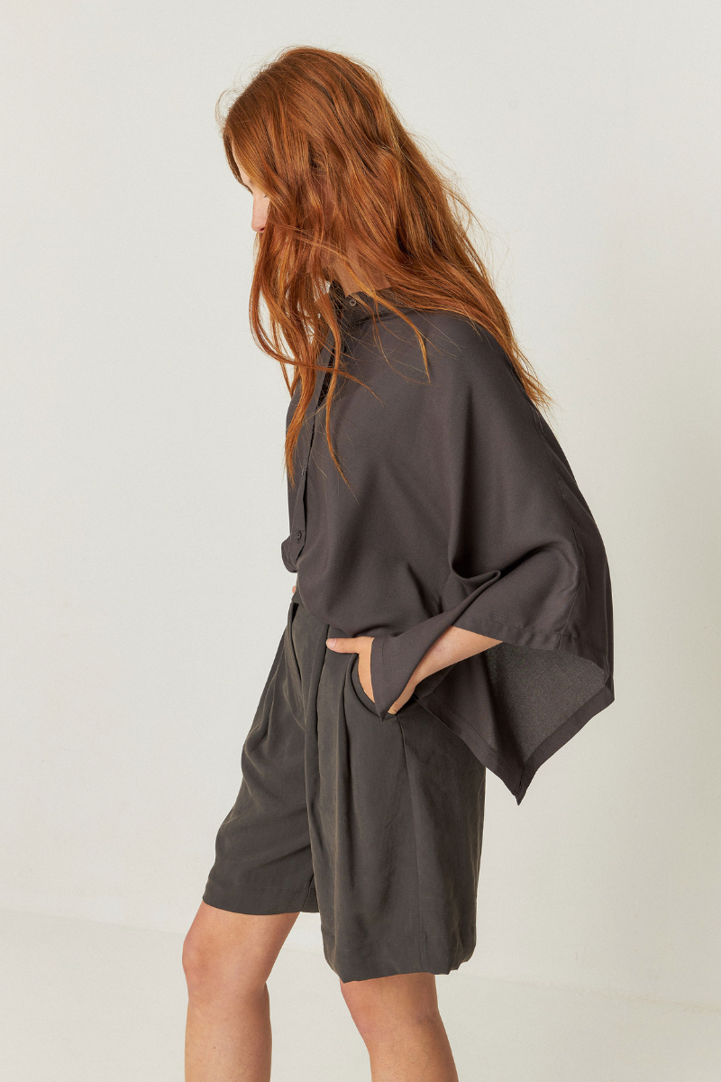 Das Oversized-Shirt von SKFK bietet Ihnen dank der 3/4-langen Kimonoärmel nicht nur eine bequeme Passform, sondern verleiht Ihnen auch einen angesagten Look. Mit dem Mao-Kragen und der Knopfleiste vorne ist es die ideale, vielseitige Bluse für deine Garderobe.