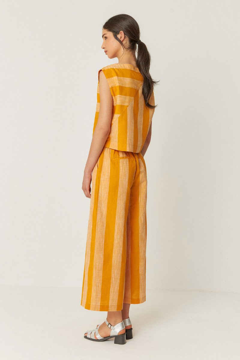 Geniesse den Sommer in diesem luftigen Shirt von SKFK aus Leinen und Bio-Baumwolle. Mit den gestreiften Mustern, einer bequemen, geraden Passform und einem runden Kragen ist dieses ärmellose Oberteil perfekt für warme Tage. Nachhaltig und modisch zugleich!
