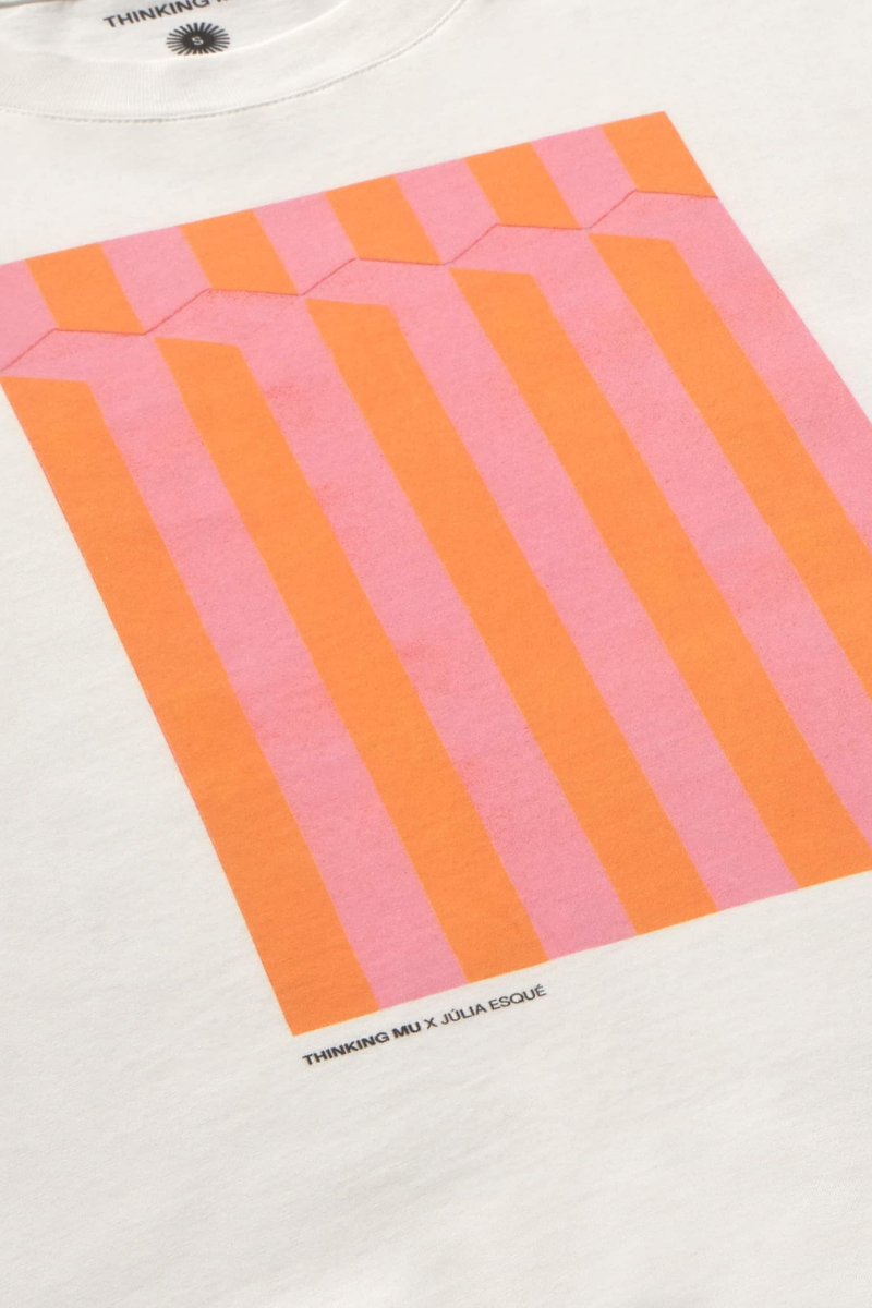 Das Oversize-T-Shirt „Esque Lena“ von Thinking MU vereint nachhaltigen Stil mit künstlerischer Originalität. Hergestellt aus mitteldicker Bio-Baumwolle (180 g/m²) bietet es angenehm weichen Tragekomfort und eine großzügige Passform für ein lässiges Outfit. Das designstarke, von Júlia Esqué entworfene Muster, inspiriert von Korbwaren und Handwerkskunst, setzt einen einzigartigen Akzent auf der Vorderseite. Mit rundem Halsausschnitt und kurzen Ärmeln ist dieses Shirt vielseitig kombinierbar und ideal für bewusste Modefans.
