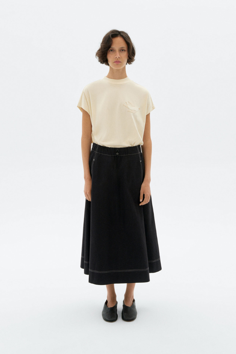 Dieses handbestickte T-Shirt Bird Volta von THINKING MU vereint nachhaltigen Stil mit einzigartigem Design. Aus hochwertiger Bio-Baumwolle gefertigt, bietet es mit seinem mittleren Stoffgewicht von 180 g/m² angenehmen Tragekomfort und Langlebigkeit. Der klassische Rundhalsausschnitt und die ärmellose, entspannte Passform sorgen für eine lässige Silhouette, während das handgestickte Patchwork jedem Shirt eine individuelle Note verleiht. Ein vielseitiges, umweltbewusstes Kleidungsstück für jeden Tag.