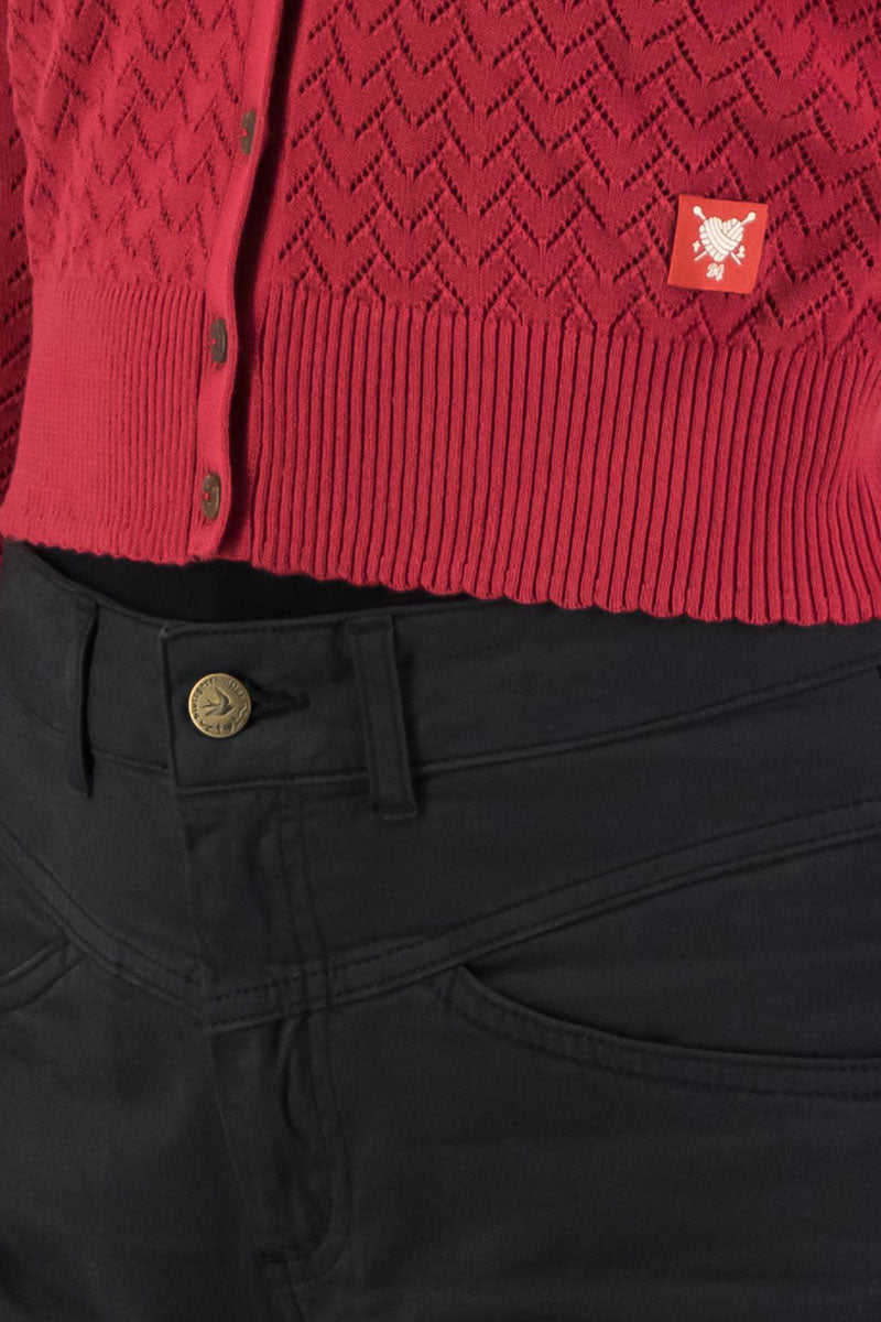 Der gemütliche High-Waist-Bund mit praktischen Gürtelschlaufen, aufgesetzte Gesäßtaschen mit charakteristischer Blutsgeschwister-Stickerei und eine mondäne 7/8-Länge lassen dieses kombinationsfreudige Beinkleid unwiderstehlich anziehend erscheinen! Liebevoll und mit Stolz haben wir die unifarbene Essential-Hose gebrandet: Unser authentisches Wunderkurve Label auf dem rückwärtigen Bund und detailverliebte Logonieten mit Schwalbenprägung im Antik-Look machen die Hose zu einem Blutsgeschwister Original, das für lange Zeit ein fester Bestandteil Deiner Garderobe sein wird.