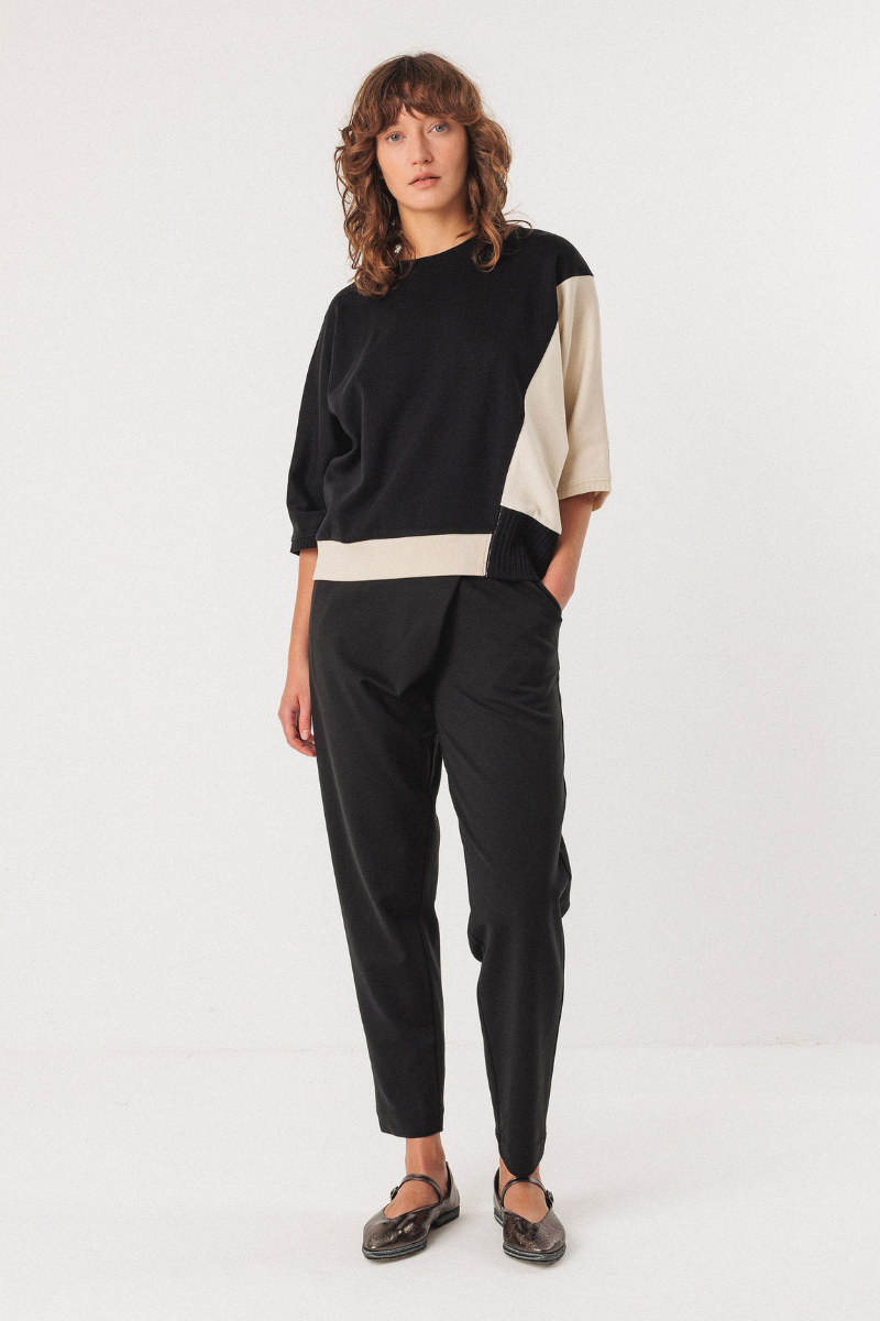 Dieses locker geschnittene T-Shirt von SKFK besticht durch seine Fledermausärmel und den asymmetrischen Schnitt, der für einen modernen Look sorgt. Kontrastierende Einsätze und eine gerippte Einfassung verleihen dem Shirt eine besondere Note und unterstreichen Ihren individuellen Stil. Ideal für alle, die Komfort mit trendigem Design verbinden möchten.