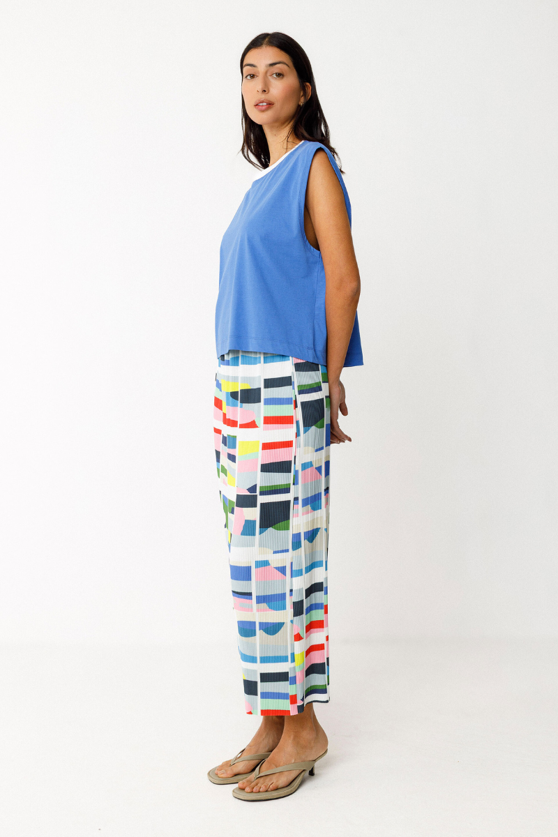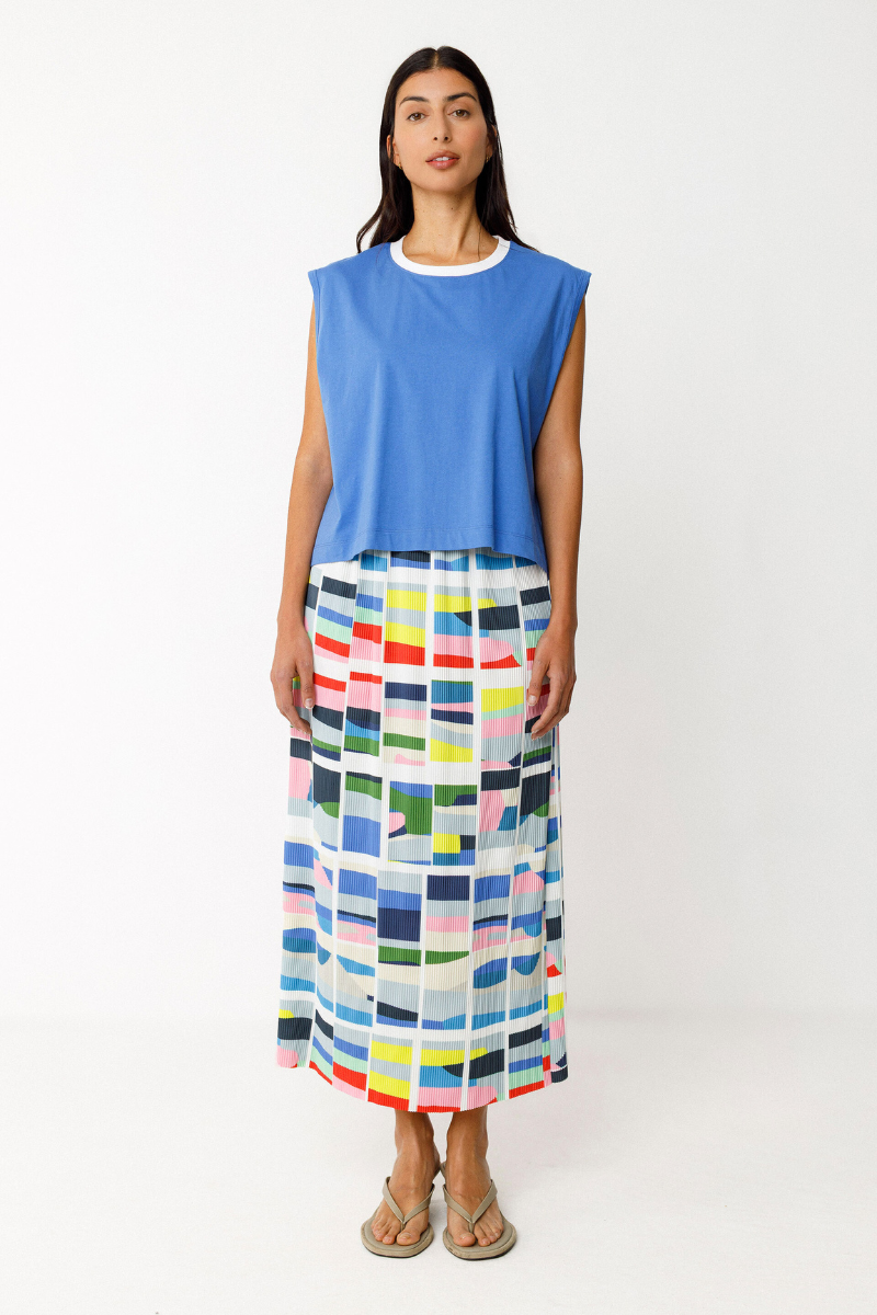 Locker geschnittenes, ärmelloses Top von SKFK mit eckigem Schnitt. Rundhalsausschnitt mit kontrastierender Rippblende.