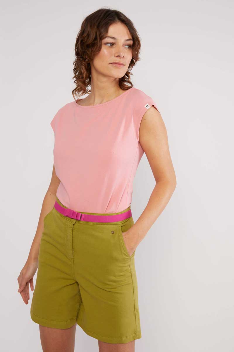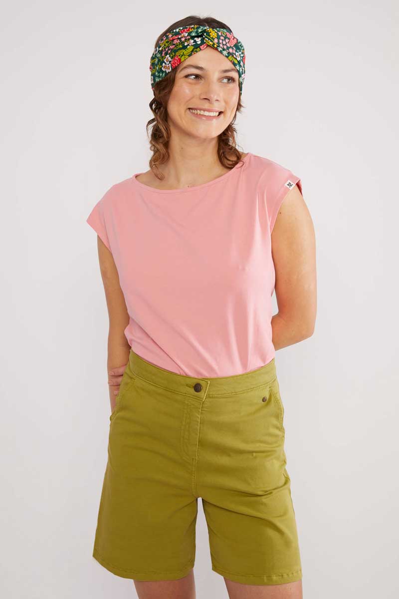 Gemütliche High-Waist-Shorts aus elastischem Bio-Baumwoll-Twill in vier zeitlosen Unifarben. Die kurze Hose mit mondänem Beinumschlag ist das Nonplusultra-Basic des Sommers – lässig, bequem, stylisch und leicht zu kombinieren bereichert das schöne Beinkleid jeden Kleiderschrank.