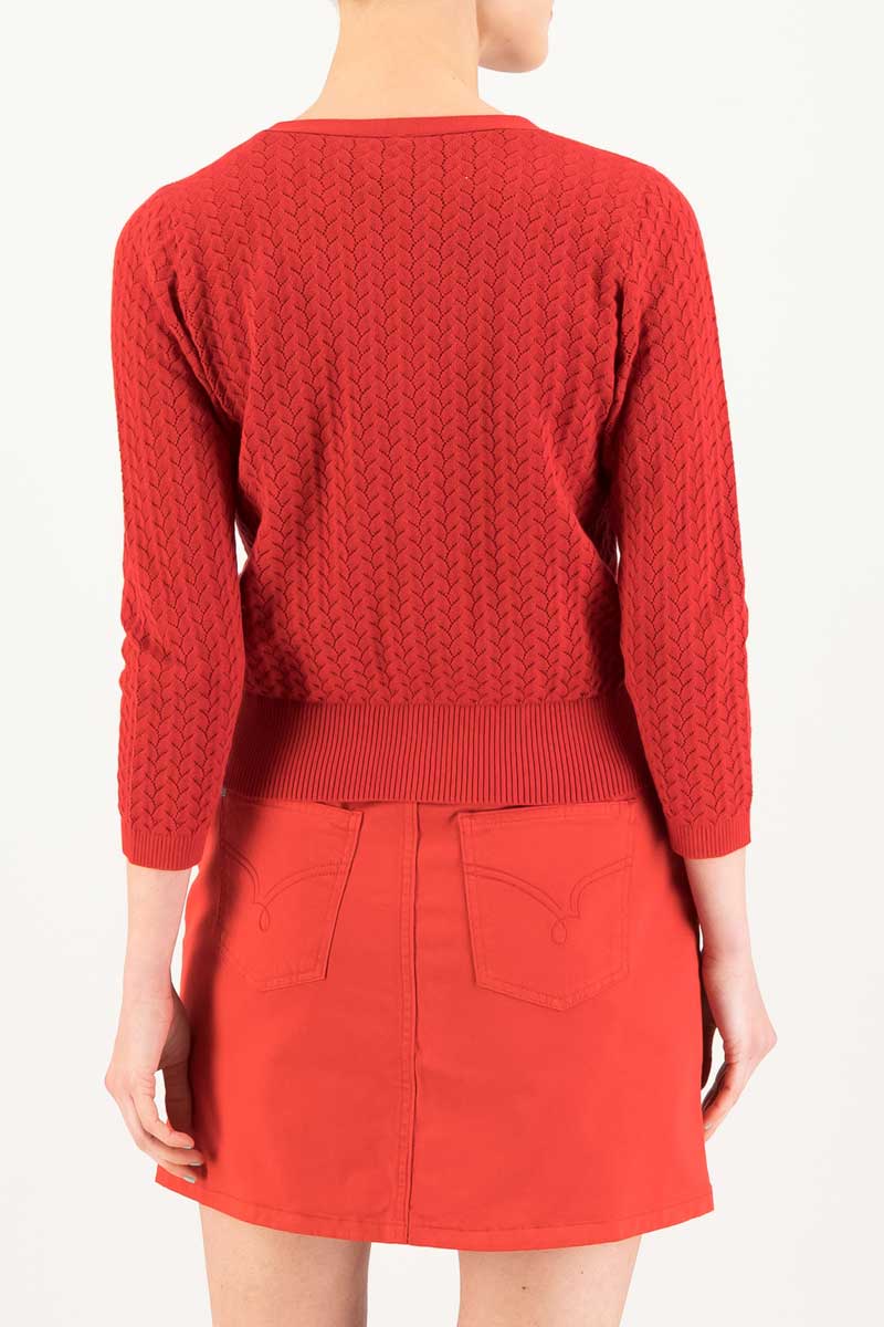 Kurze, GOTS-zertifizierte Ajour-Strickjacke aus einem gemütlichen und leichten Bio-Baumwollgarn. Der feminine Cardigan mit V-Ausschnitt, Ärmeln in entspannter ¾-Länge und anschmiegsamen Rippenstrickbündchen ist ein zeitloses Basic, das Deine Outfits mit Bravour komplettiert.