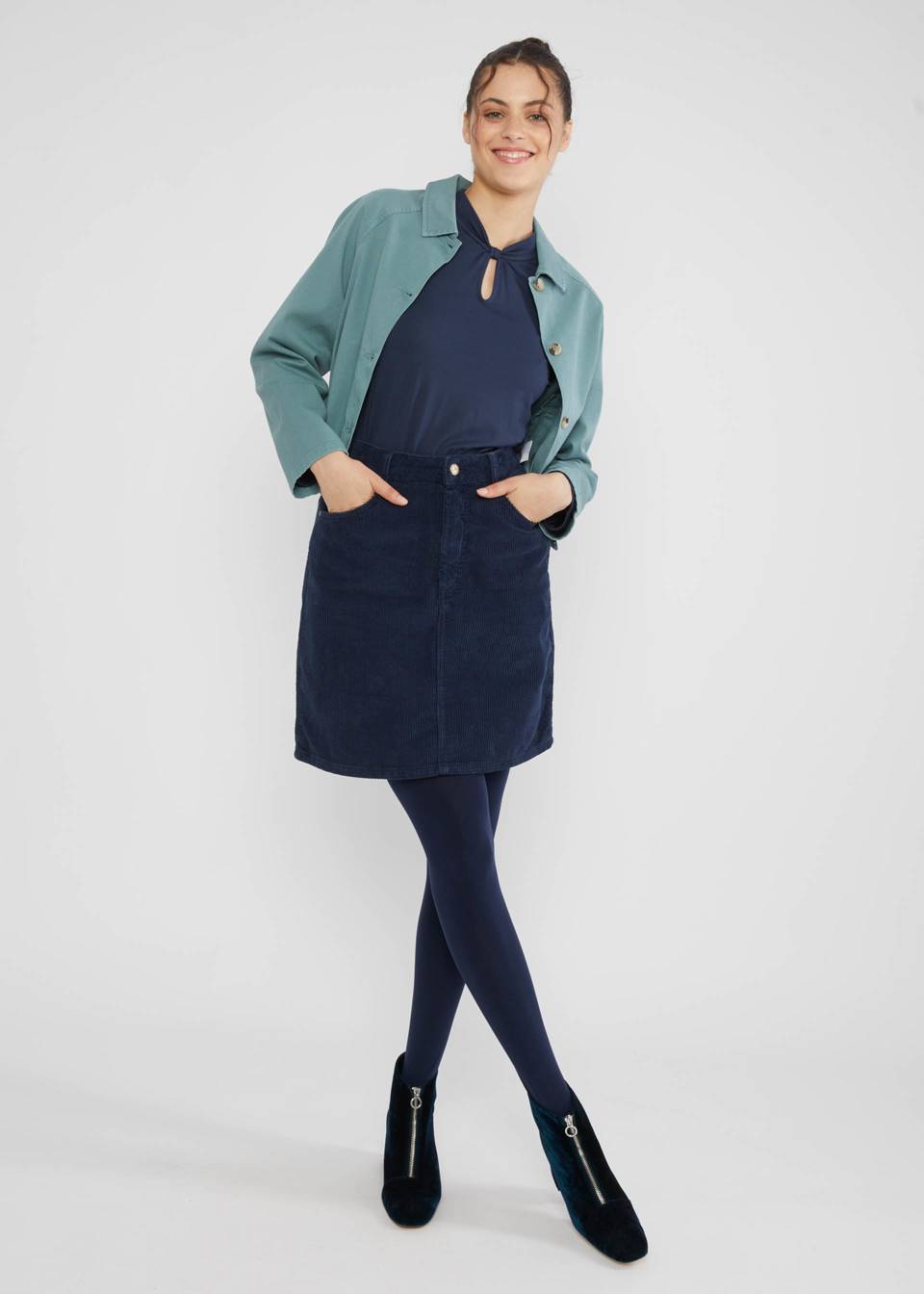 Dieser Cord-Rock aus besonders nachhaltiger Bio-Baumwoll-Qualität ist unkompliziert-schön und die perfekte Basis für individuelle Outfitkreationen. Der oberschenkellange Rock zaubert eine feminine Silhouette und wird mit den praktischen Eingriffstaschen im Vorderteil dein perfekter Begleiter.