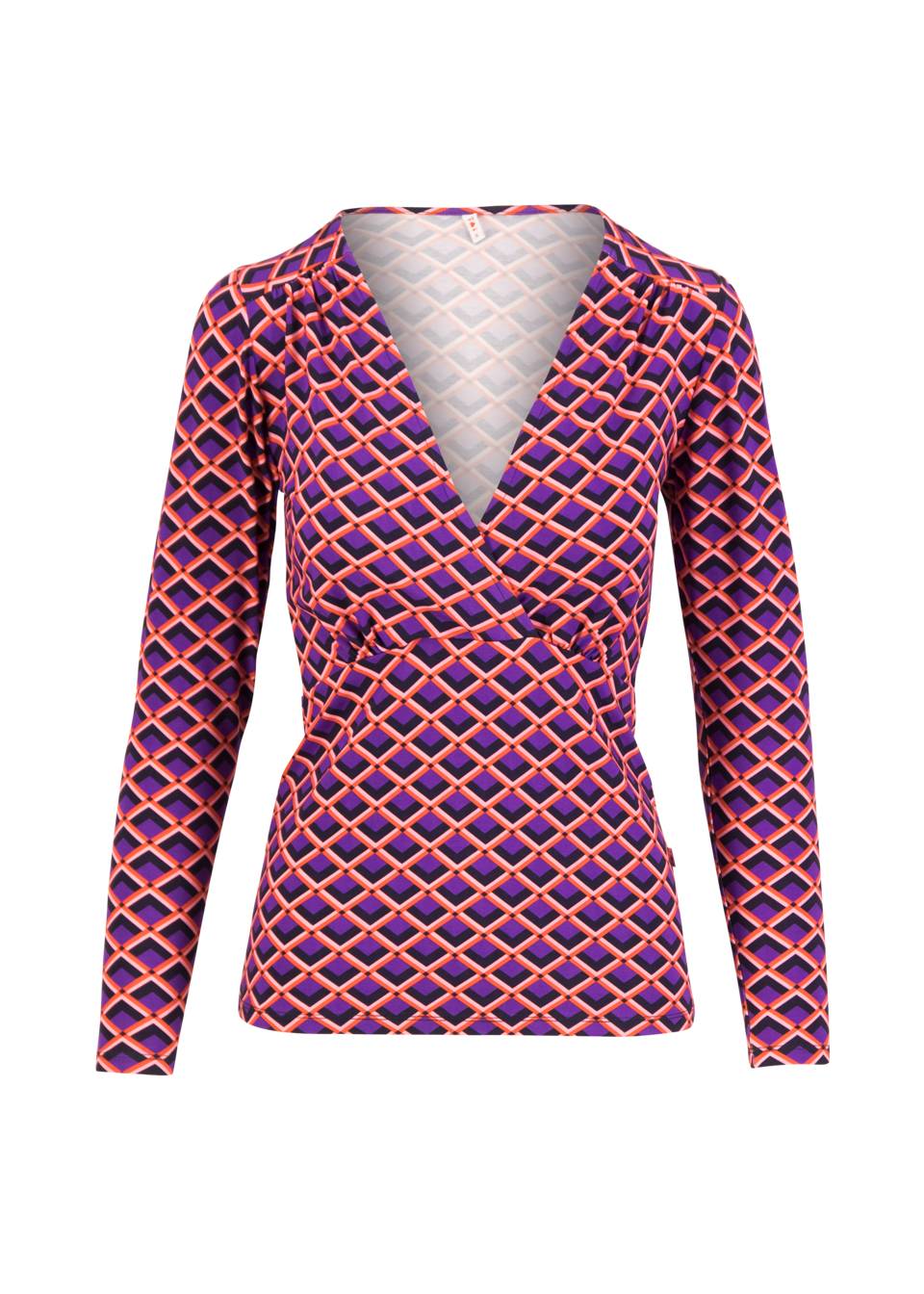 Das La Chatte Coeur Shine Like A Diamond Check ist ein langärmliges Top mit einer Wickeloptik und einem V-Ausschnitt. Dieses modische Top wird durch das farbenfrohe grafische Muster abgerundet. Damit strahlst du wie ein Diamant!