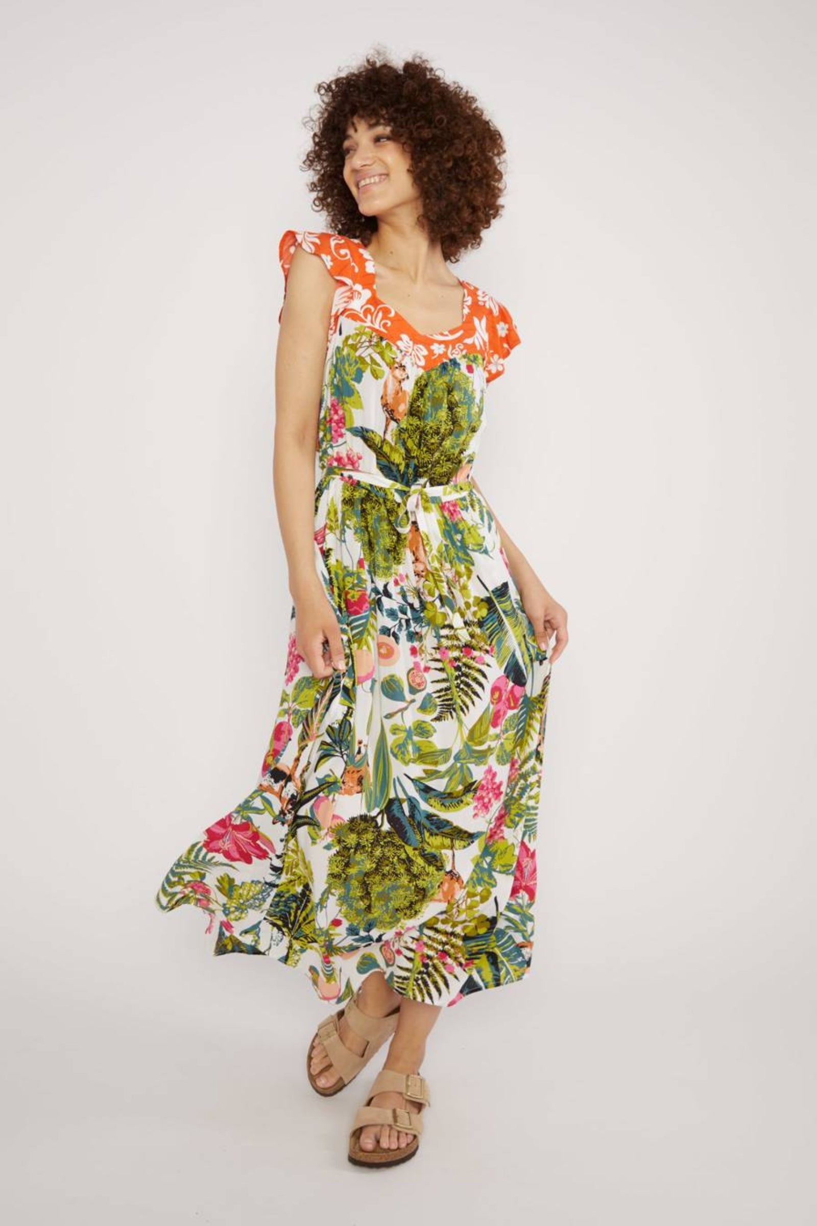 Das aus besonders nachhaltigem Viskose-Webstoff gefertigte Kleid von Blutsgeschwister besticht durch seinen leicht herzförmigen Ausschnitt und kurze Flügel-Ärmelchen. Mit abnehmbarem Bindegürtel und versteckten Eingriffstaschen für praktisches und stylisches Tragen. Dezente Raffungen auf der Brust sorgen für eine schmeichelhafte Passform.