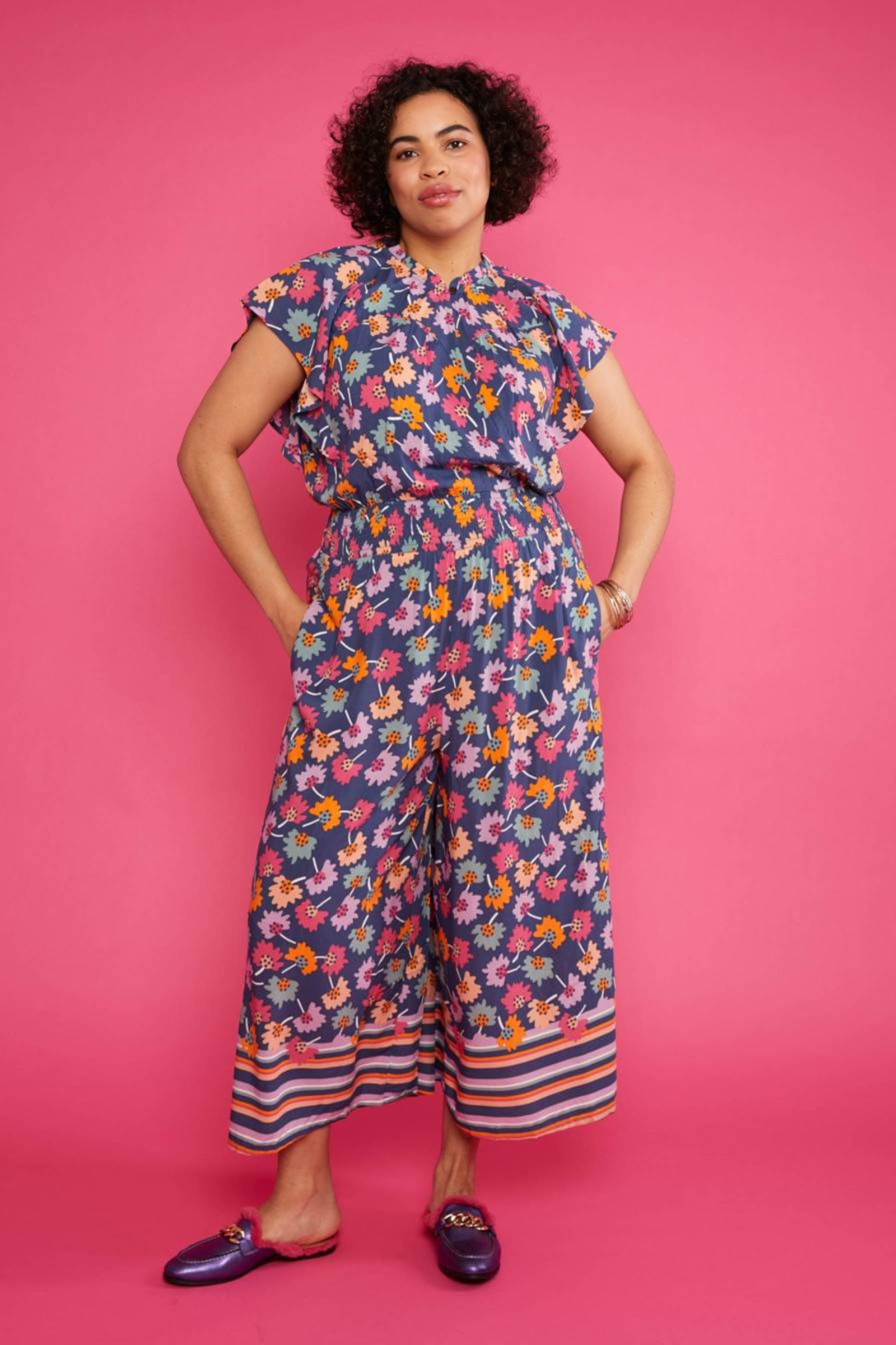 Erlebe puren Komfort mit dem Jumpsuit von Blutsgeschwister! Der wadenlange Overall aus nachhaltigem Viskose-Webstoff besticht mit wickelartigem Ausschnitt, dekorativen Kräuselungen, Rüschenkragen und Smok-Taille. Kurze Fledermausärmel und Cropped-Beine sorgen für einen modernen Look. Praktische seitliche Taschen runden das Design ab.